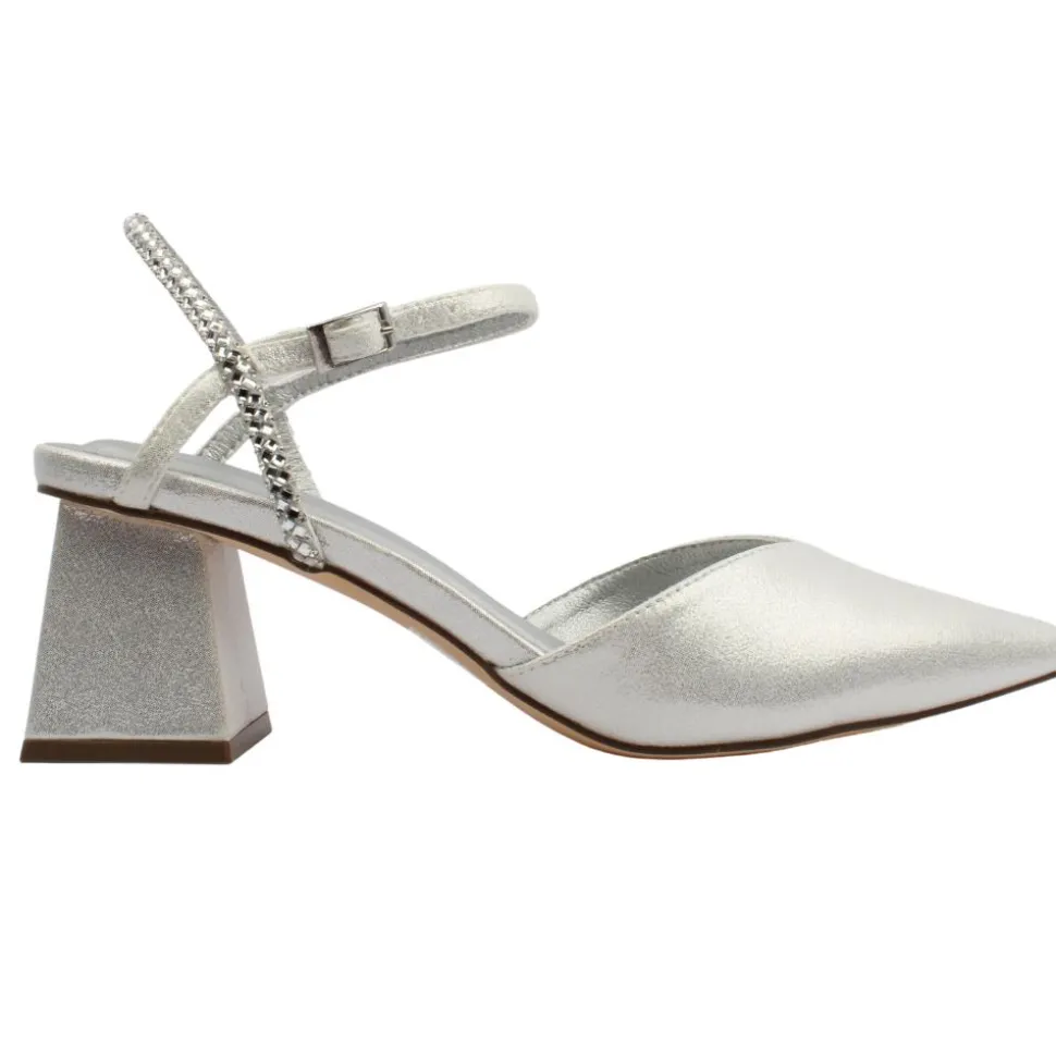 Make a bold yet refined statement with the Menbur 25762 Dressy Shoe, designed to elevate your style for any special occasion. A shaped block heel provides stability while maintaining a chic, modern edge.The pointed toe adds a touch of sleek elegance, elongating the leg and enhancing the shoe’s sophisticated profile. A charming heart shape adorns the front of the shoe, giving it a romantic and unique flair. The ankle strap closure, detailed with silver accents, ensures a secure and adjustable fit while adding a refined touch of luxury. Perfect for weddings, formal events, or a night out