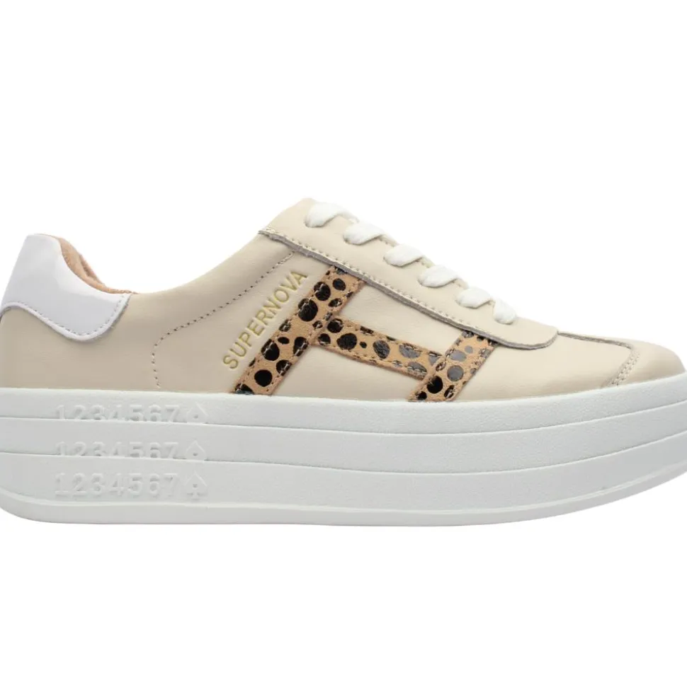 Step up your sneaker game with the Drilleys Sixty Eight Platform Trainer, featuring a Beige upper with leopard detailing for a timeless, effortlessly cool look. The platform sole adds a modern edge while providing a comfortable lift, perfect for all-day wear.