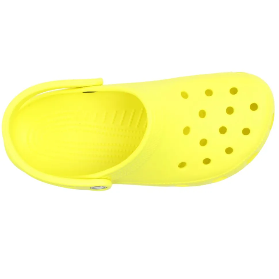 Unisex Crocs sandals with punched hole upper and back strap which can be used as a sling back or pushed forward and used as a mule.
