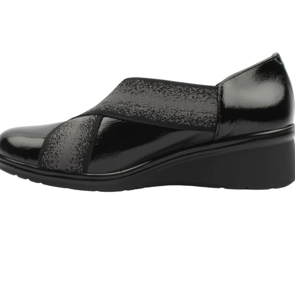 Experience the comfort of the slip on ladies shoes from Pitillos Shoes.Enjoy a subtle lift with the low wedge sole which provides a comfortable and stable walking experience.The easy slip-on design combined with the high cut elastic topline saves you time while providing a secure and snug fit. the soft insoles can be removed if necessary.