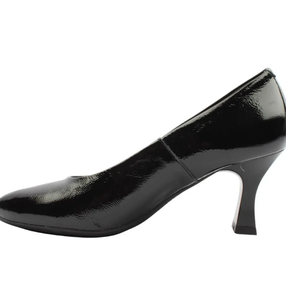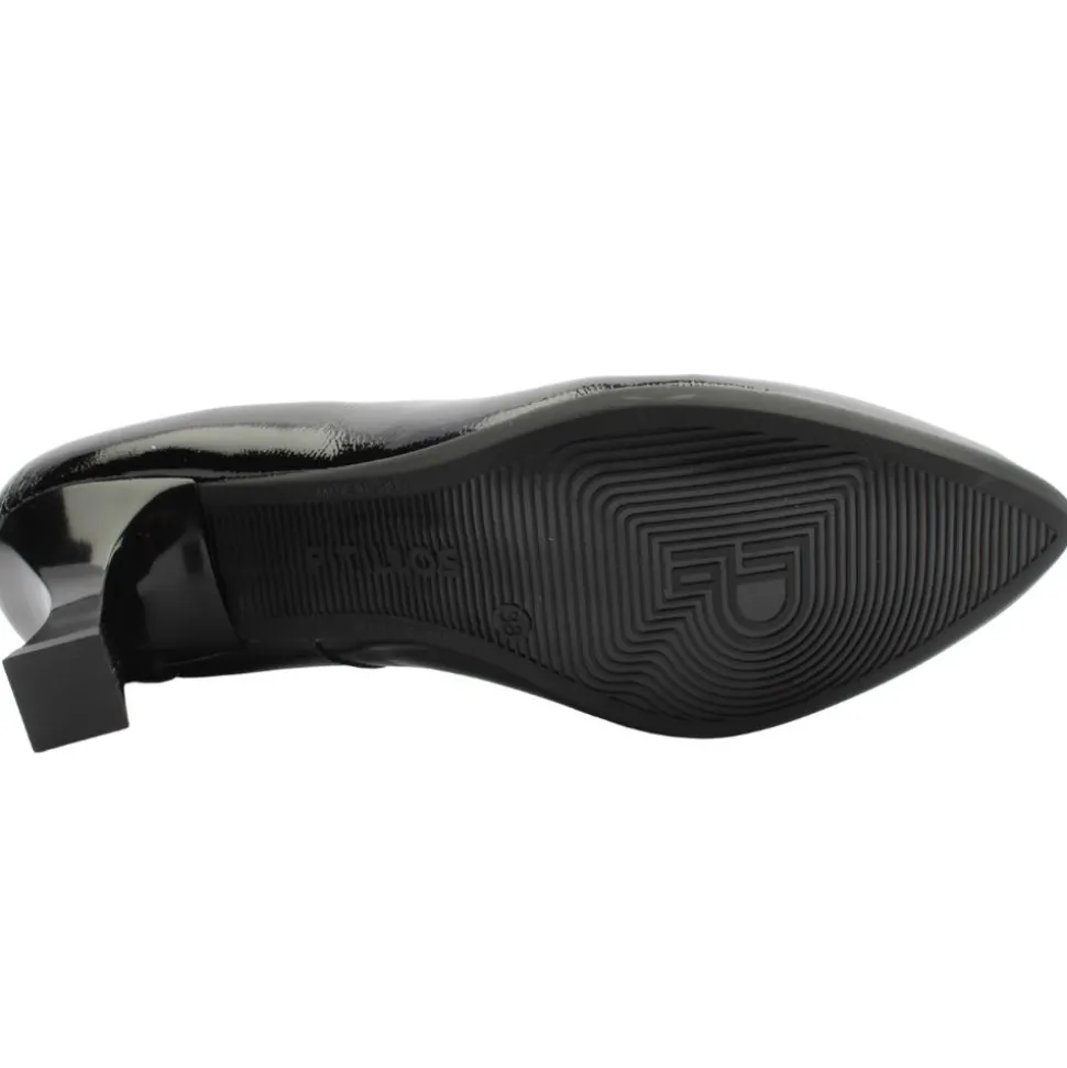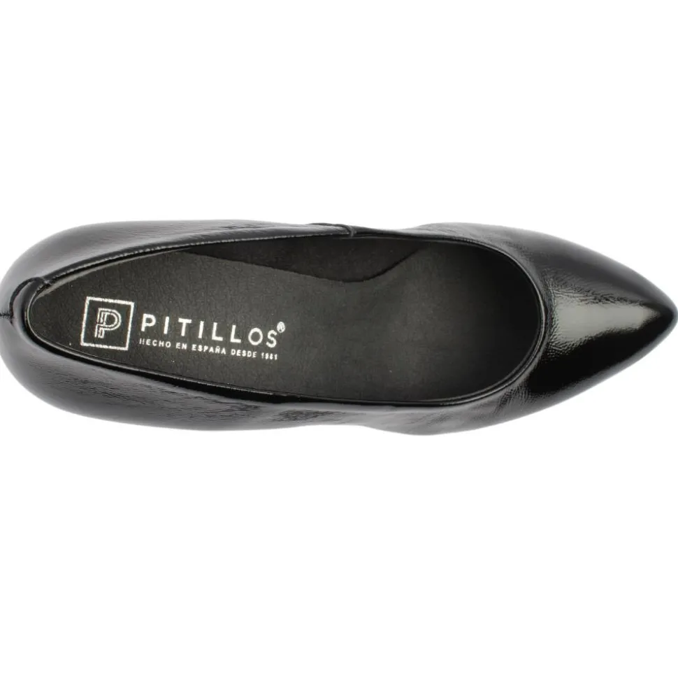 Stylish black patent court shoes from Pitillos Shoes. These shoes combine style with comfort and functionality. The p ointed toe adds an elegant and sophisticated touch. T he lining & insole are breathable, ensuring your feet stay cool and comfortable and are specially treated materials help to keep the shoes fresh and pleasant throughout the day.