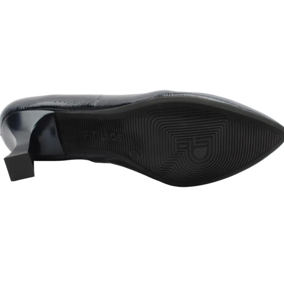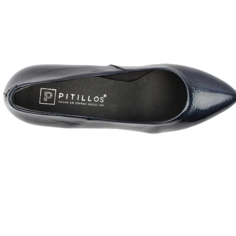 Classic Ladies Court Shoe 10162 from Pitillos in navy patent. combines style with comfort and functionality. The Pointed toe adds an elegant and sophisticated touch. The Shaped medium stiletto heel, offering a chic and stylish profile while maintaining manageable height for comfort. The lining & insole are breathable, ensuring your feet stay cool and comfortable and are Specially treated materials help to keep the shoes fresh and pleasant throughout the day.