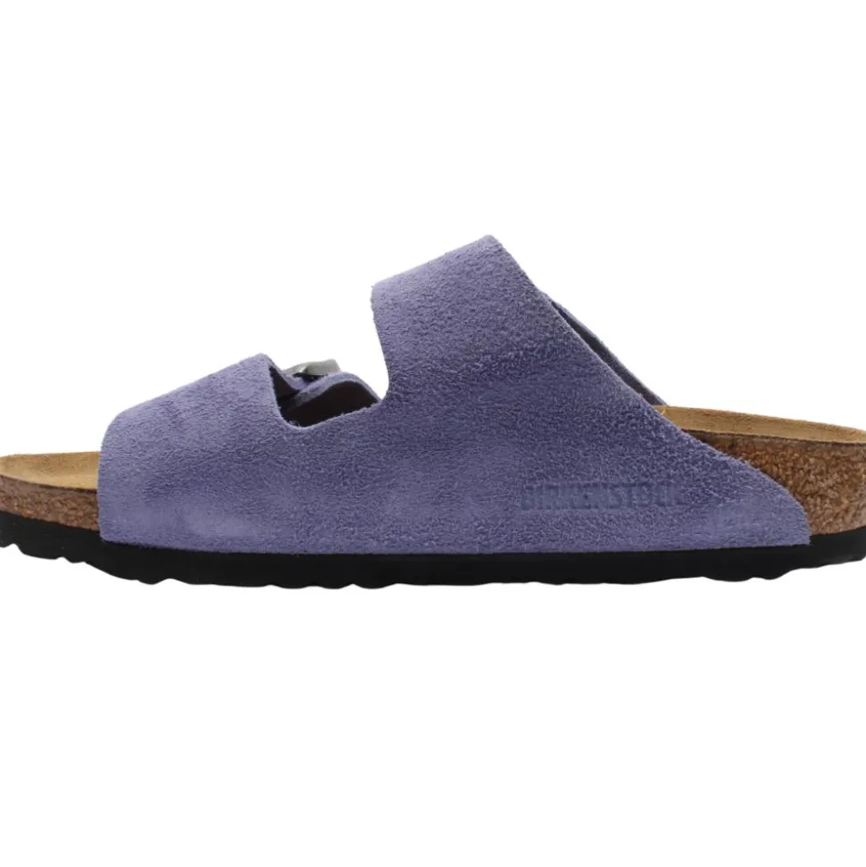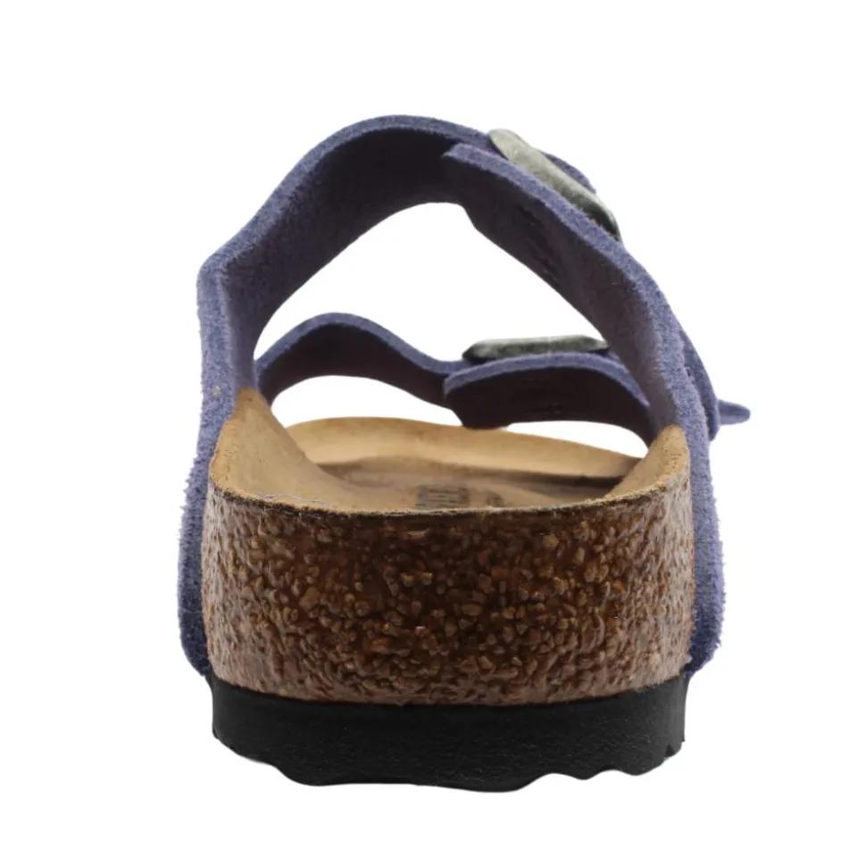 The Birkenstock Arizona sandals are a classic from the Birkenstock collection, a comfort legend and a fashion staple. This simple sandal has a two strap upper in a soft purple suede & can be adjusted to suit most foot shapes. They have a magical cork footbed that conforms to the shape of your foot. This is a ” narrow” fit mule.