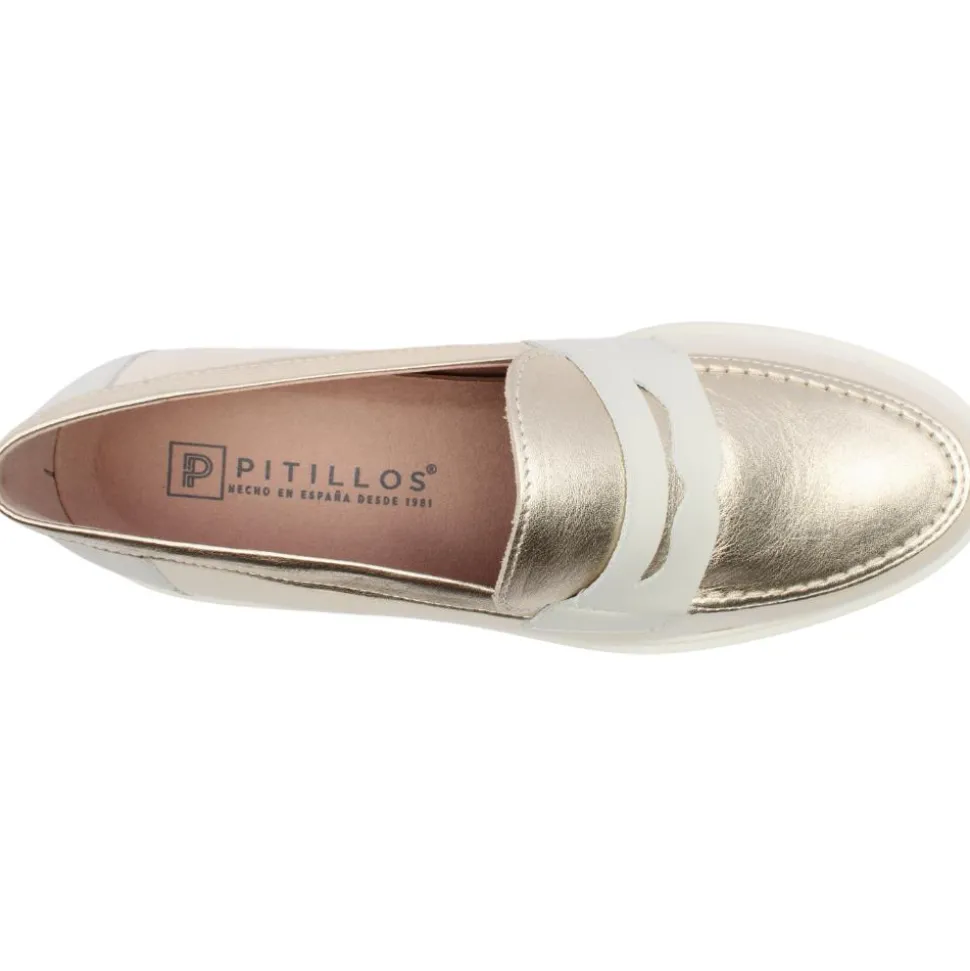 Add a touch of elegance to your footwear collection with the Pitillos Loafer, 10384 in nude patent leather with gold detailing for a chic, sophisticated look. This loafer is designed for both comfort and style, making it the perfect choice for any occasion. A Removable Cushioned Insole which is Soft and supportive for all-day comfort, with the option to use custom orthotics. A Lightweight Outsole which ensures comfort and flexibility with each step, making this loafer easy to wear all day long.