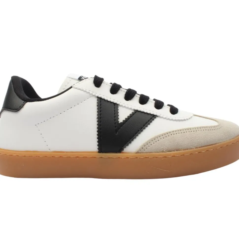 Casual trainers from Victoria shoes. These Victoria trainers have a white leather upper with black ‘V’ branding on the side of the trainer. The perfect trainer for everyday casual wear!