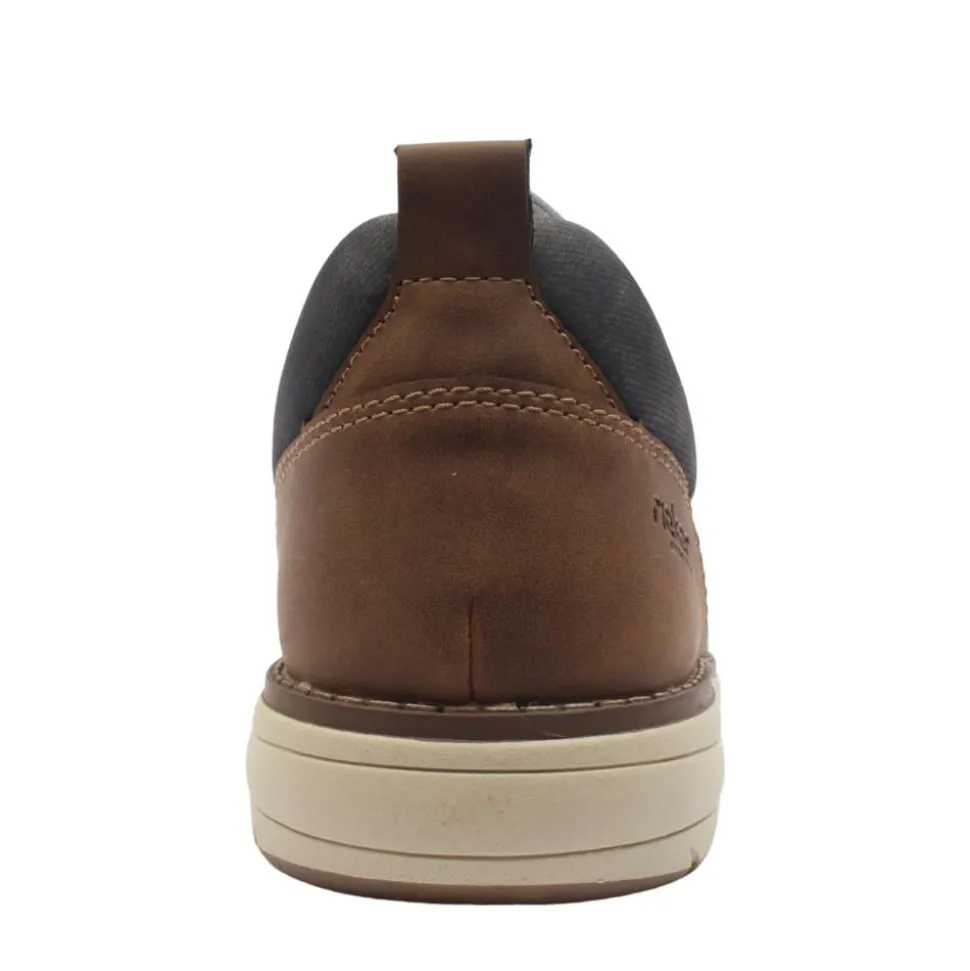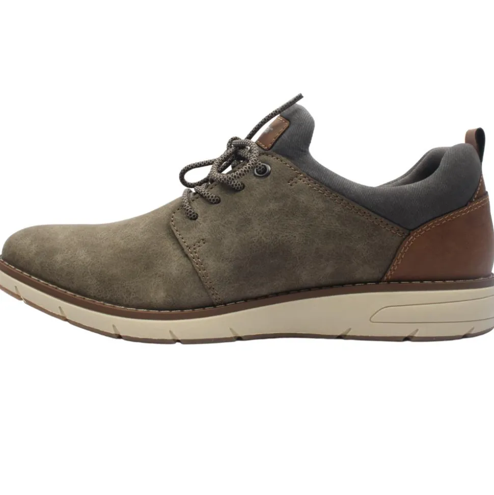 Casual slip on mens shoes from the Rieker Shoes collection. This shoe has a soft grey textile upper elasticated lace detailing.The shoe was designed using padded Rieker Anitstress insoles which provides underfoot cushioning ensuring all day comfort.