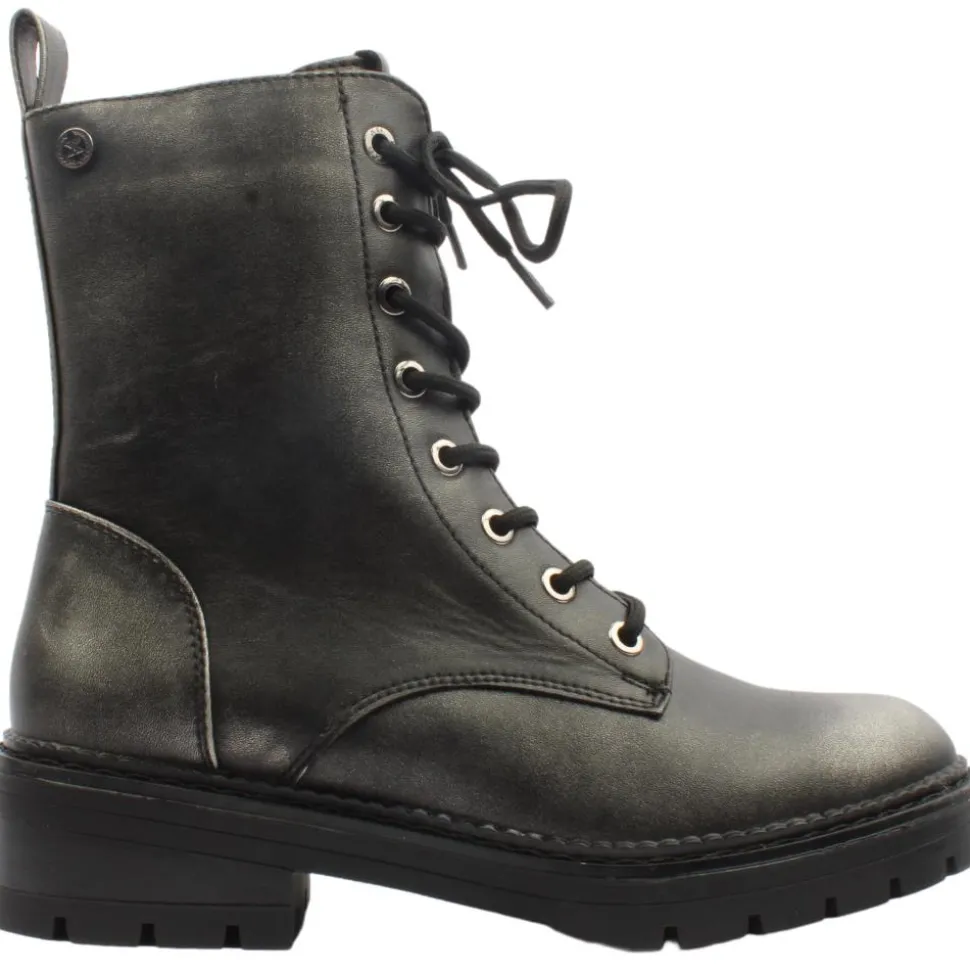 Elevate your footwear collection with the XTI 143090 Biker-Inspired Boot, designed for both style and comfort. This boot features a rugged yet chic metallic finish, perfect for making a statement. The lace-up front combined with a convenient side zipper offers both a secure fit and ease of wear. Crafted with a cushioned chunky outsole, these boots provide exceptional comfort and support, ideal for all-day wear.