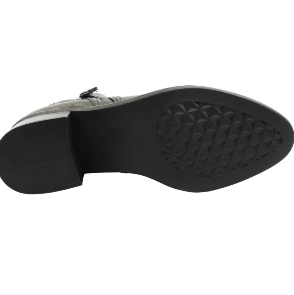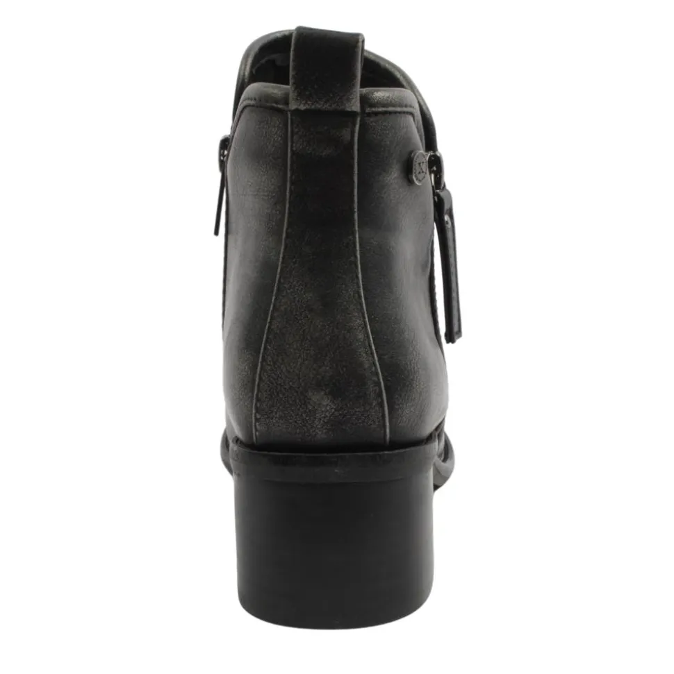 Casual ladies ankle boots from XTI shoes. These boots has a metallic grey upper with a side zip closure and low block heel which offers stability for all day wear. They have a zip closure while the outisde zip is purely decorative.