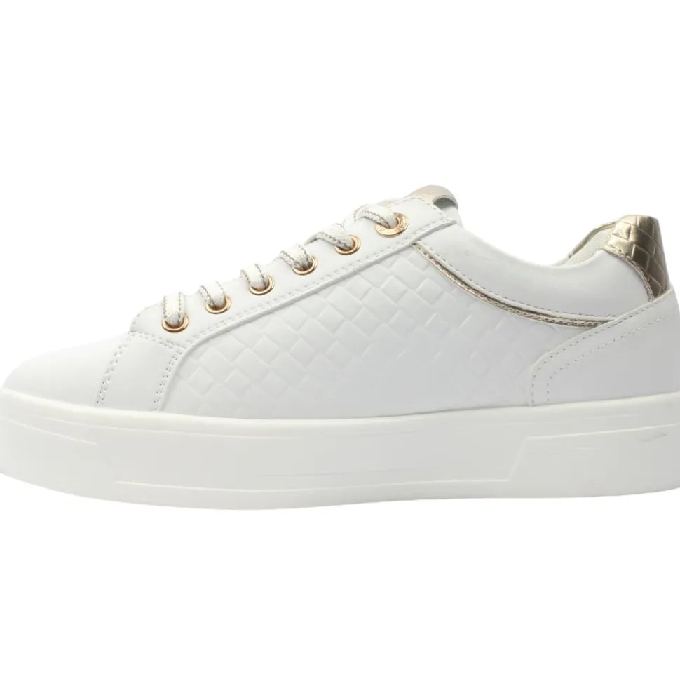 Ladies casual trainers from XTI Shoes. A white synthetic leather upper with gold detailing.These womens trainers have a combination of lace and side zip closure which offers convenience and versatility. A padded remobale insole for added comfort.
