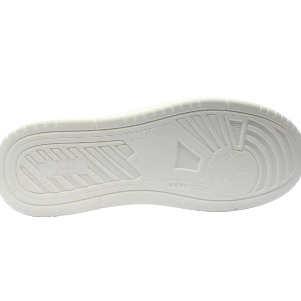 Ladies casual trainers from XTI Shoes. A white synthetic leather upper with lazer hole design and gold detailing.These trainers have a combination of lace and side zip closure which offers convenience and versatility. A padded remobale insole for added comfort.