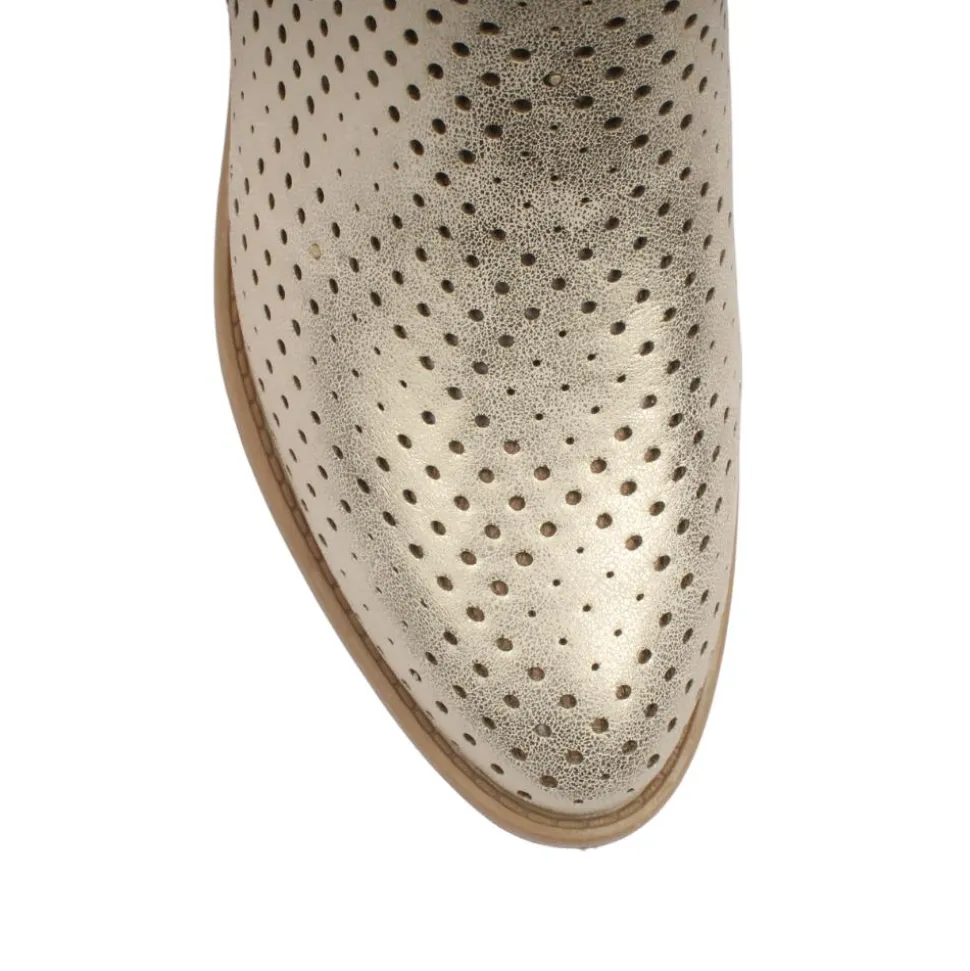 Step into spring with the XTI Ladies Fashion Boot, a perfect blend of elegance and modern design. The Dressy Gold Shimmer Upper adds a touch of glamour to your outfit, perfect for day-to-night style. The Punched Hole Detailing offers a chic, textured look while enhancing breathability for seasonal comfort. The Slightly Pointed Toe creates a sleek, sophisticated silhouette that complements any wardrobe.A Decorative zip on the outside for added style, and a functional zip on the inside for effortless wear. Ideal for pairing with dresses, skirts, or tailored trousers for a polished spring look.