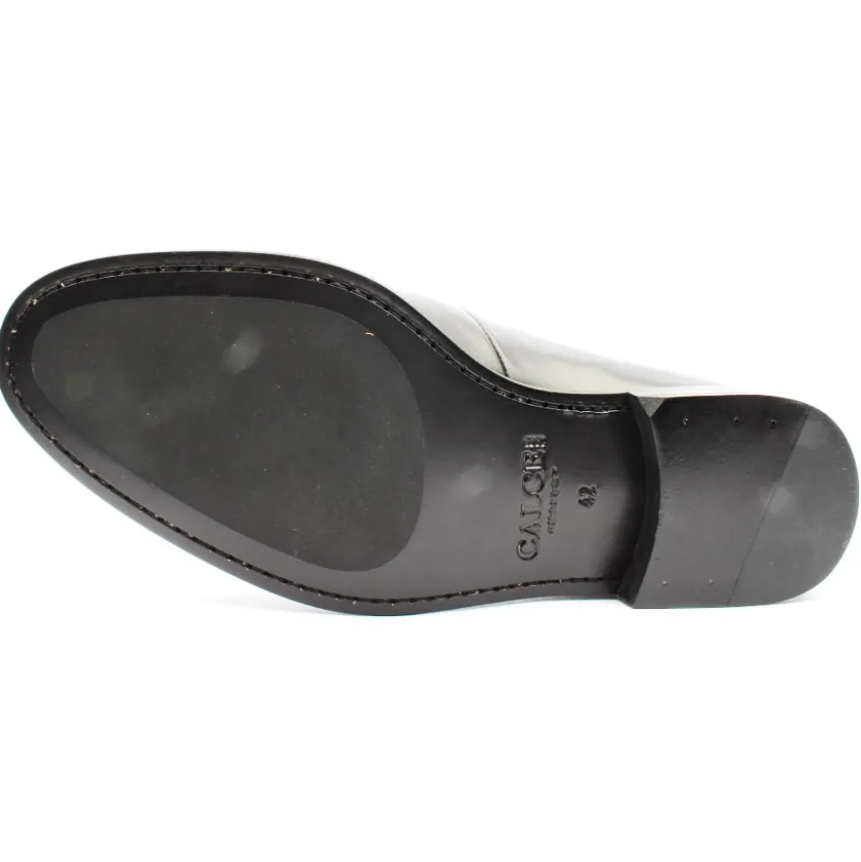 Mens Formal Shoes from Calce. These slip on dressy mens shoes have a black leather upper, soft cushioned leather insoles, a slim toe and leather outsoles with rubber grip.