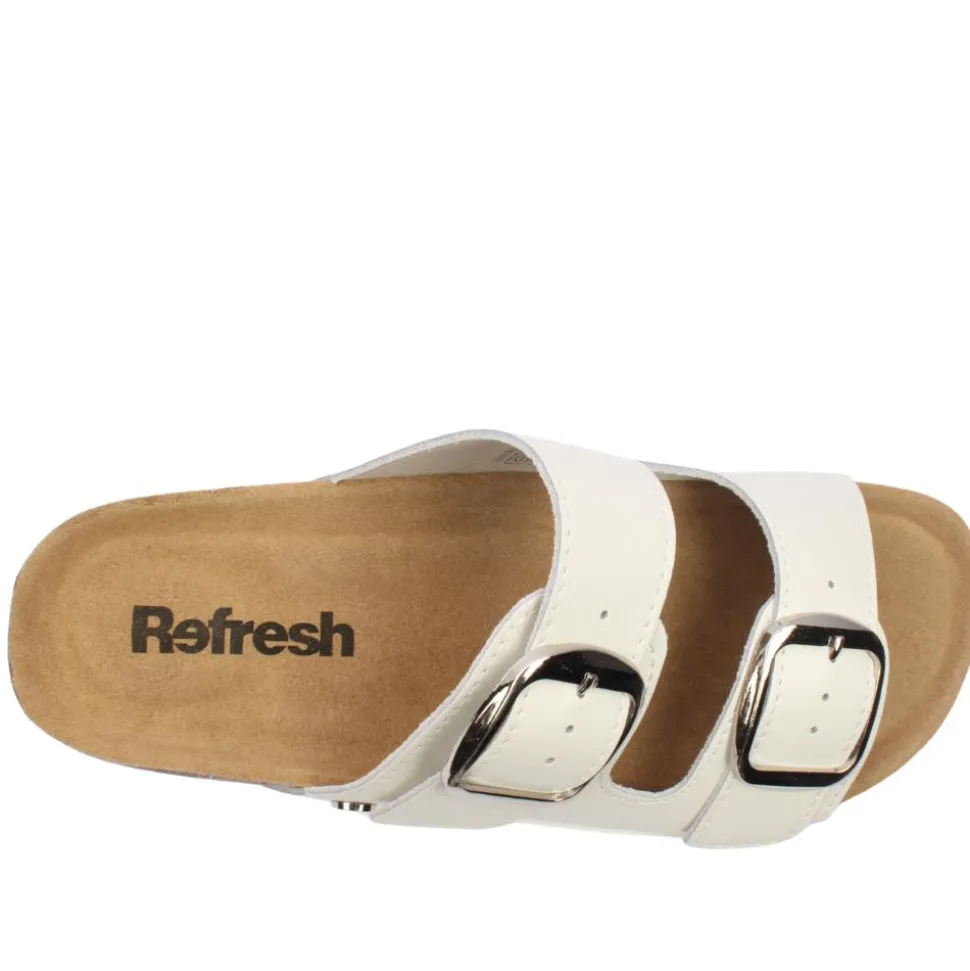 Ladies platform mules from Refresh Shoes. These ladies sandals have a classic two-strap design and sit upon a chunky platform sole.The addition of a cushioned insole which adds to the comfort of this style making them perfect for all-day wear.