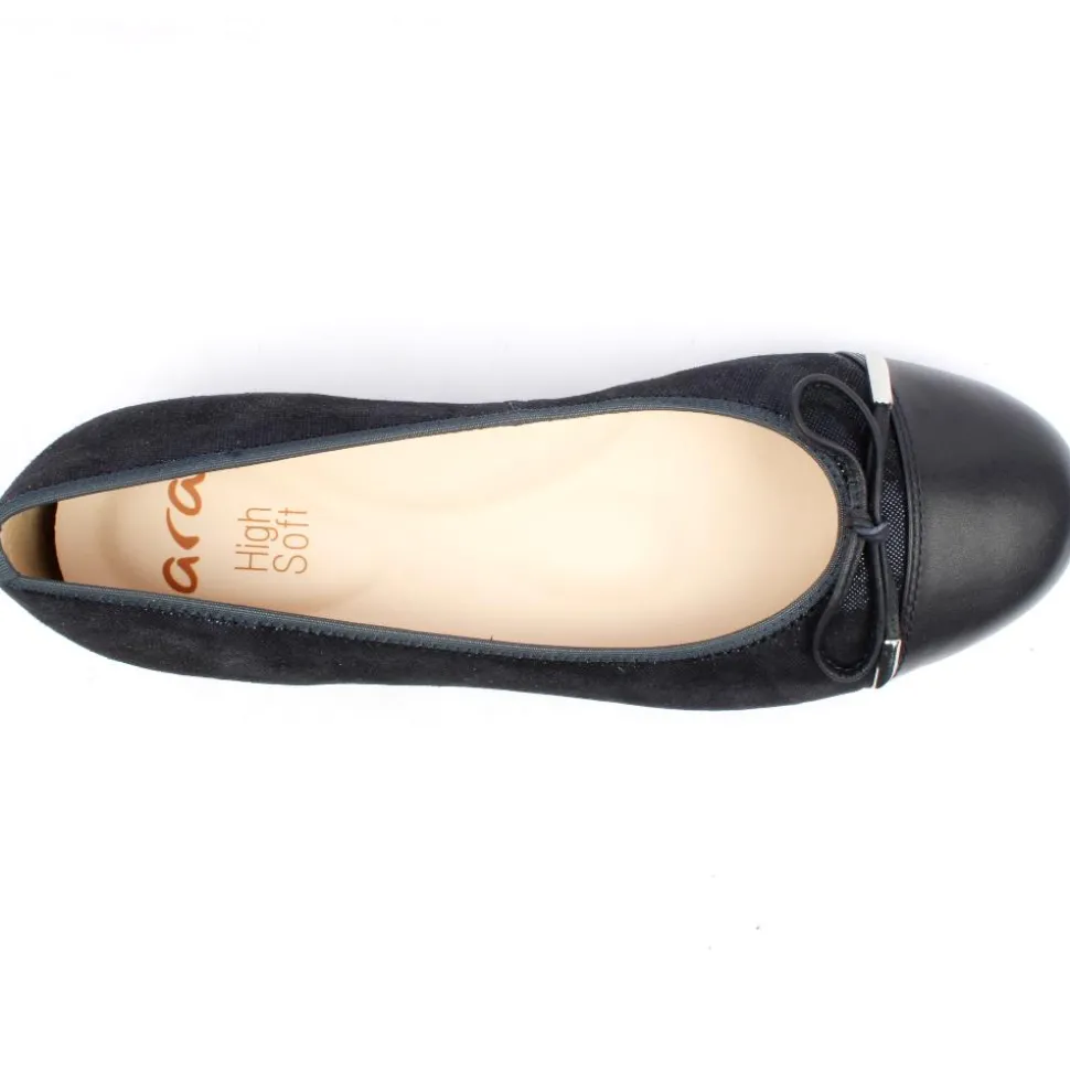 Wide fitting ladies pumps from Ara Shoes. A stylish slip-on shoe crafted with a soft shimmer effect navy upper and accented with a leather toe cap featuring a modest bow for a feminine touch. Experience lasting comfort and support throughout the day with Ara’s High Soft insoles.These shoes are a H wide fit.