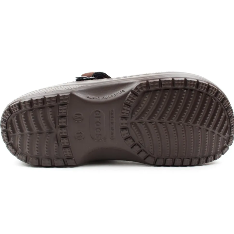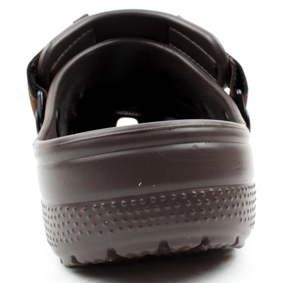 Mens Crocs with faux nubuck upper and a removable strap which can be used as a sling back or pushed forward and used as a mule. The Crocs Yukon is a best seller from the Crocs shoes range.