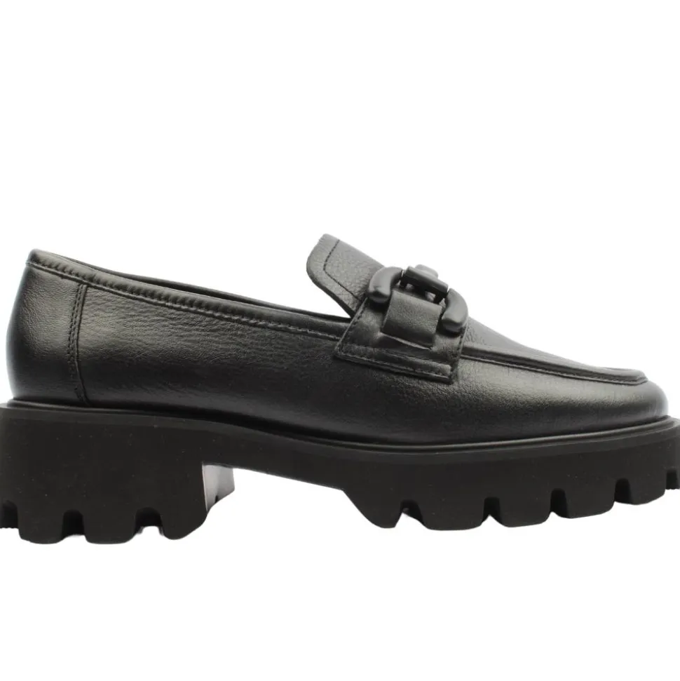 Stylish black leather loafers from Ara Shoes.Thesa Ara loafers are crafted from a soft black leather upper with a buckle across the front of the shoe amd a chunky sole unit.This shoe have a Ara High Soft insole,ensuring the shoe is comfortbale for all day wear.