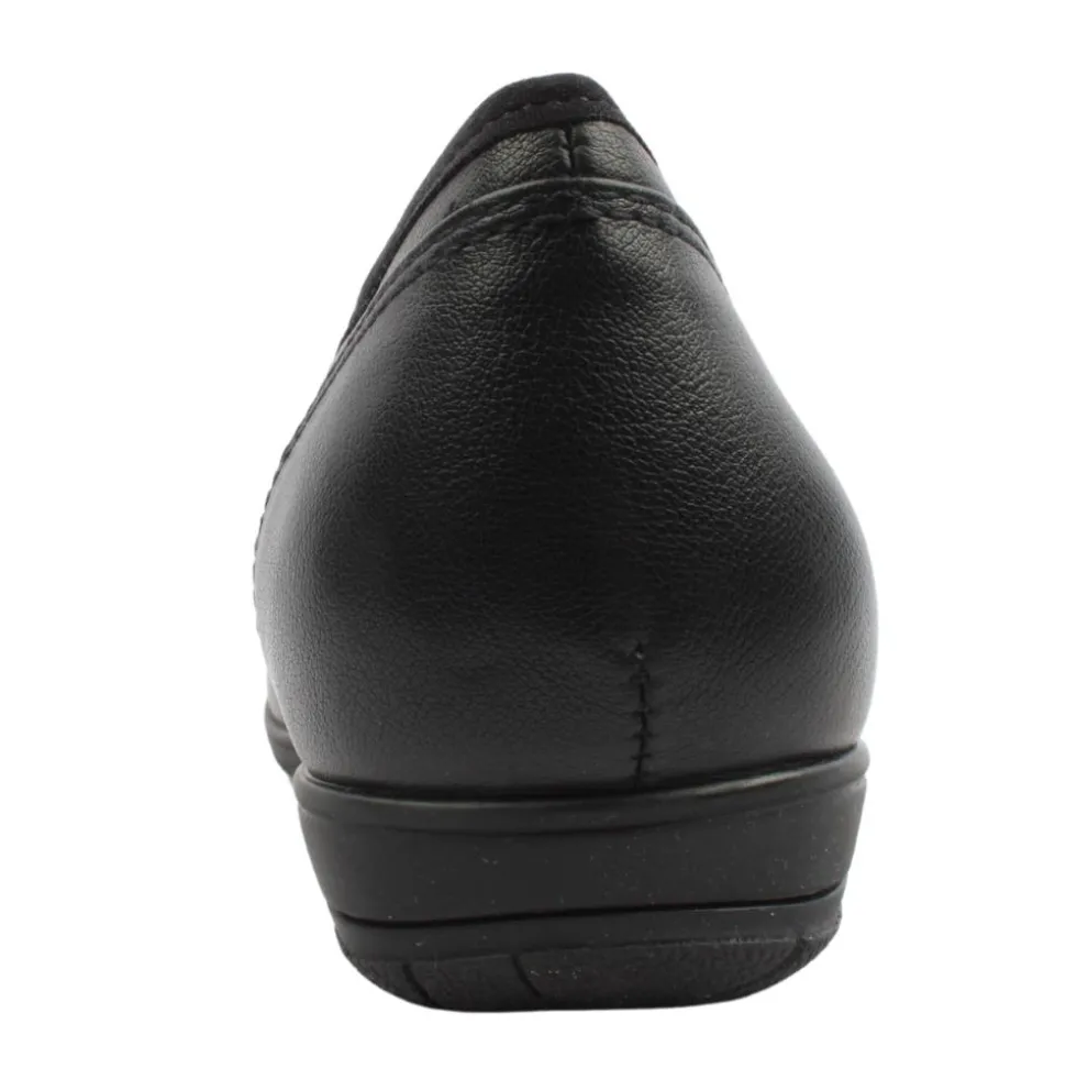 Wide fitting ladies shoes from Jana Shoes in classic black pomp design. These stylish black pomps are a H wide fit offering the wearer ample toe room.