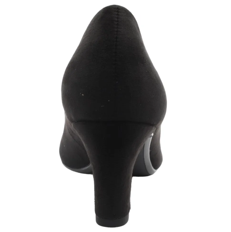 Classic low heel, round toe court shoes from Tamaris shoes. This shoe has a black faux suede upper which will match many outfits wether dressy or formal for workwear. Touch It insoles add to the comfort of this style.