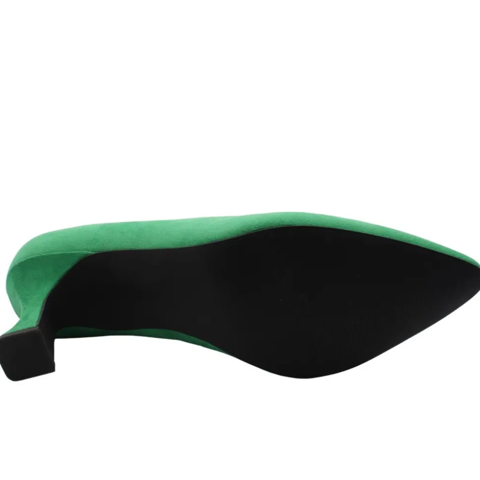 Stylish ladies court shoes from the Marco Tozzi shoes collection. Crafted with a green faux suede upper and featuring a uniquely shaped heel. The pointed toe elongates the leg and exudes elegance. Enhanced with cushioned insoles, it ensures both style and comfort.