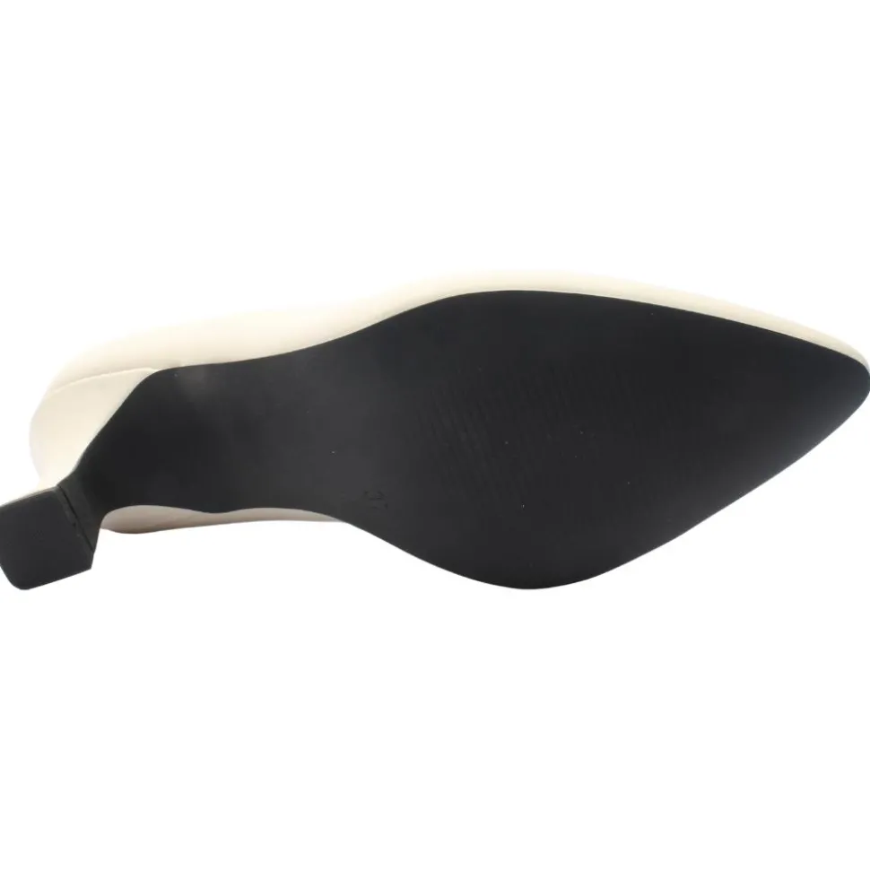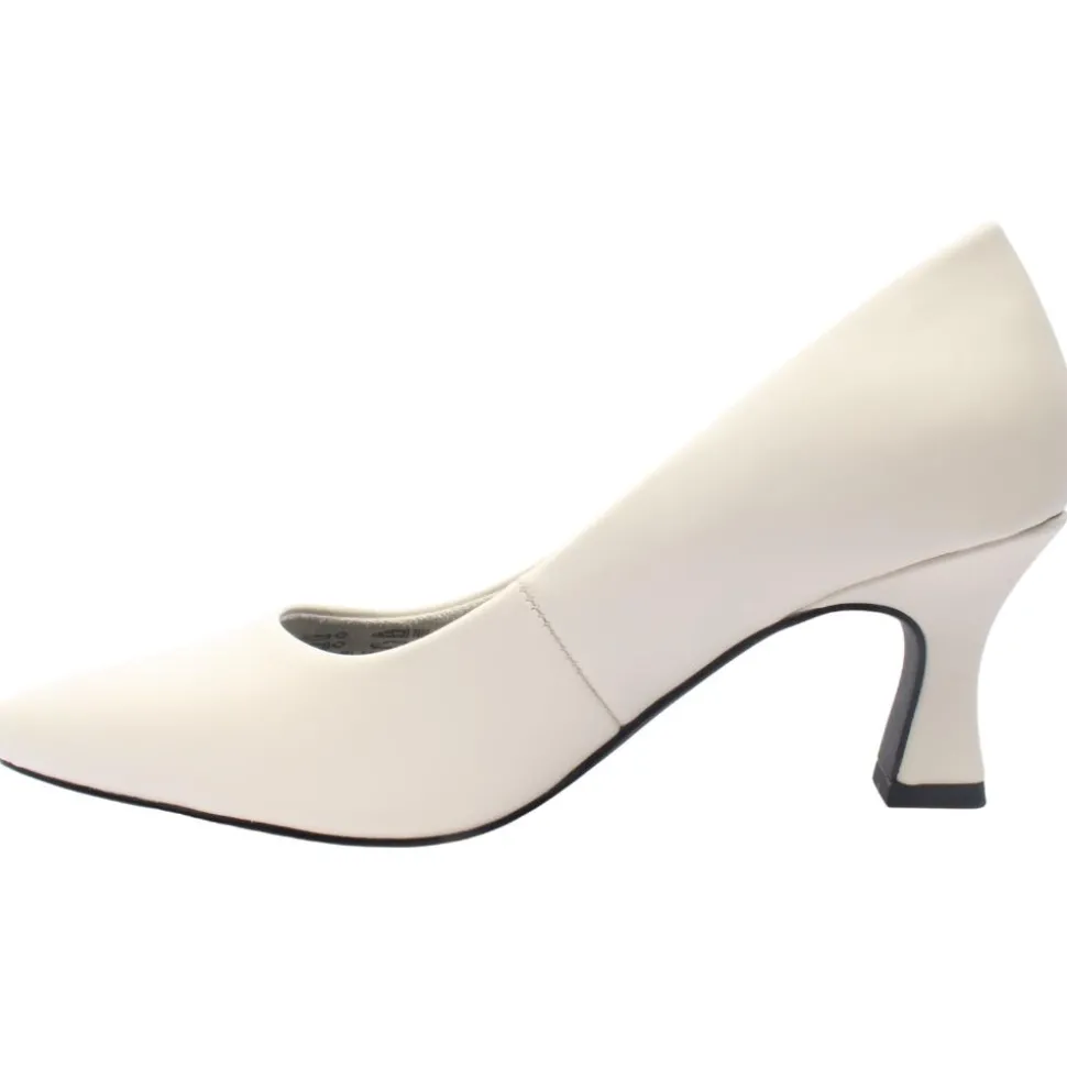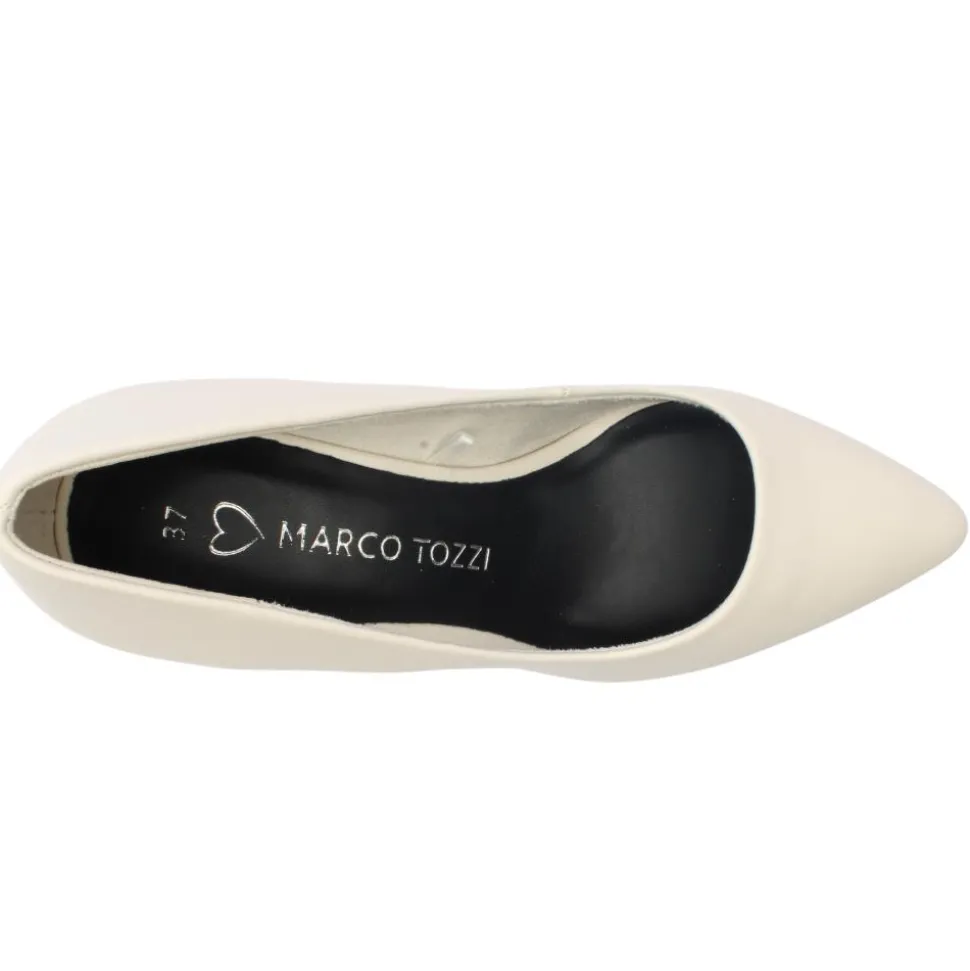 Stylish cream court shoes from Marco Tozzi shoes with a medium heel and pointed toe. These stylish heels boast a neutral cream upper allowing you to pair with many outifts.Complete with padded insoles for added comfort.