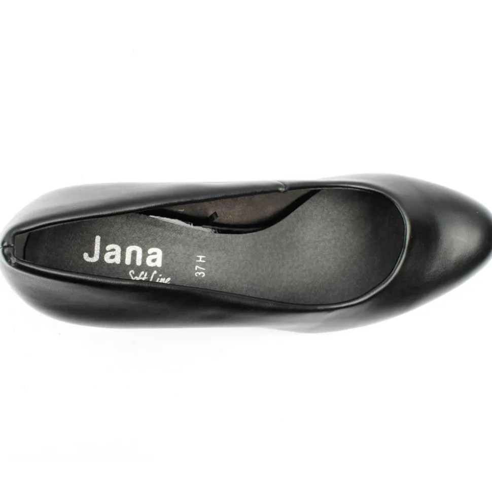 Ladies court shoe from Jana. This shoe has a faux leather upper with a block heel which adds to the comfort of the shoe. This style is a ‘H’ wide fitting style. Cushioned softline insoles add to the comfort of this style.