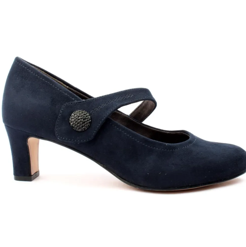 Ladies wide fitting dressy shoes from Jana Shoes. These classic court shoes have a strap across the instep with a velcro closure and rounded toe.They are a H wide fit offering ample toe room and added comfort.