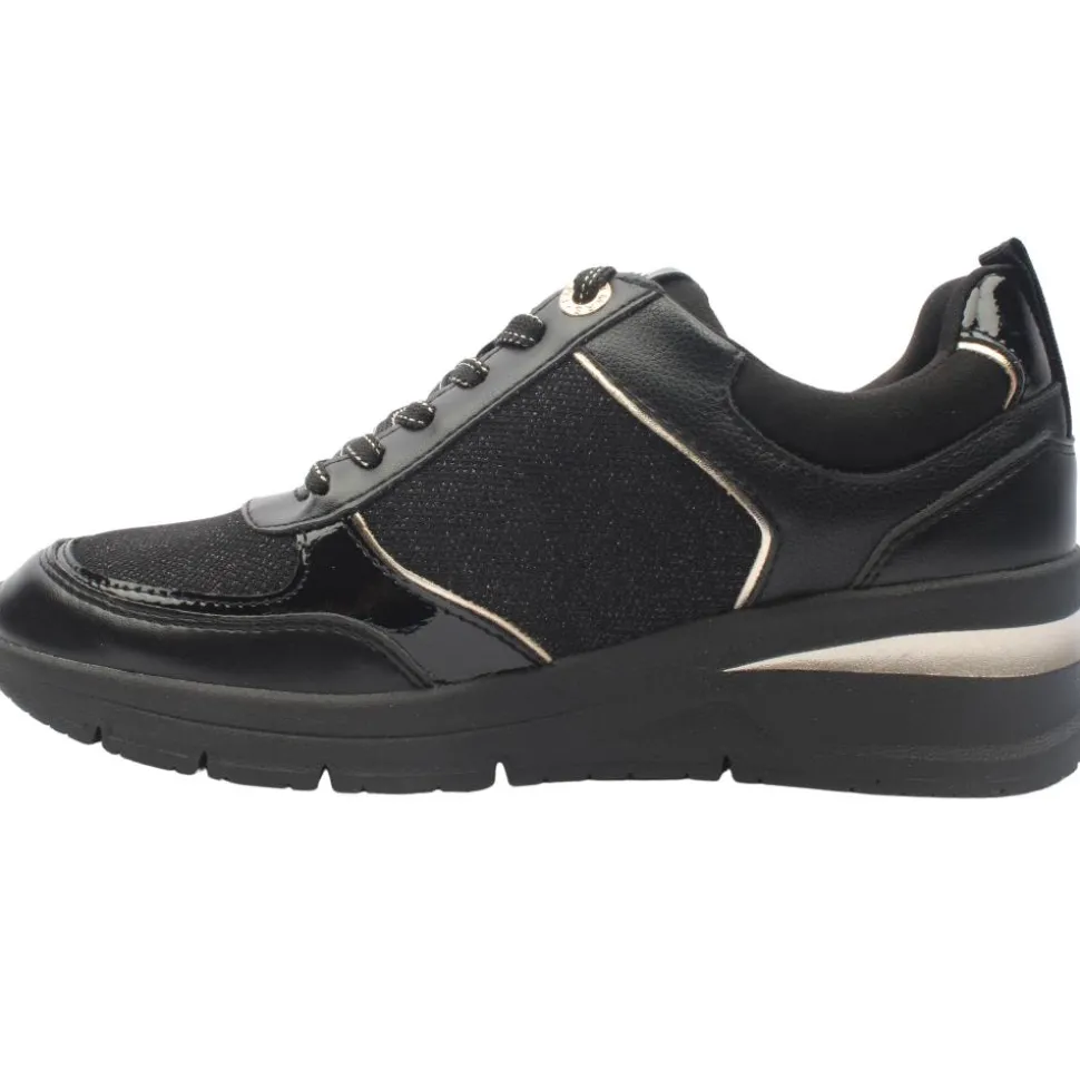 Style and comfort in these ladies wedge shoes from Tamaris shoes in a black upper with pops of gold detailing. The side zip and lace make it easy to put on & take off and ensures a secure fit on the foot. Designed with a removable insole for those who need an orthotic.