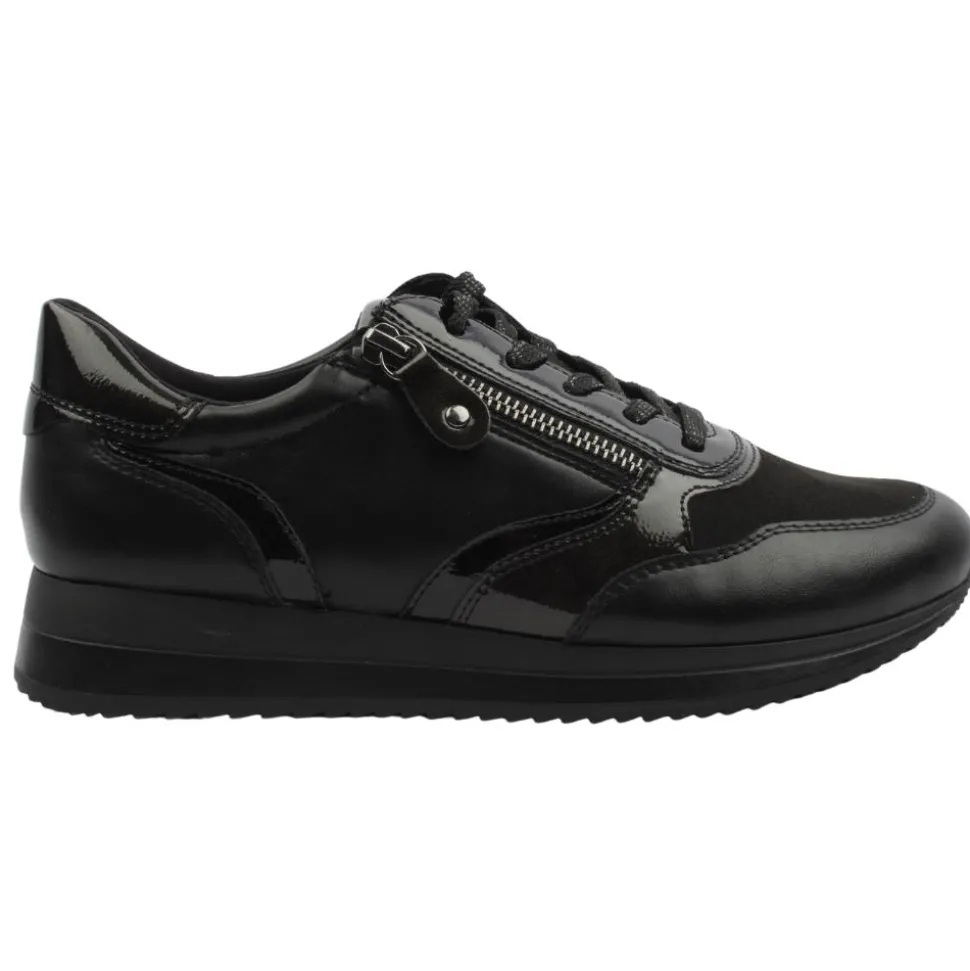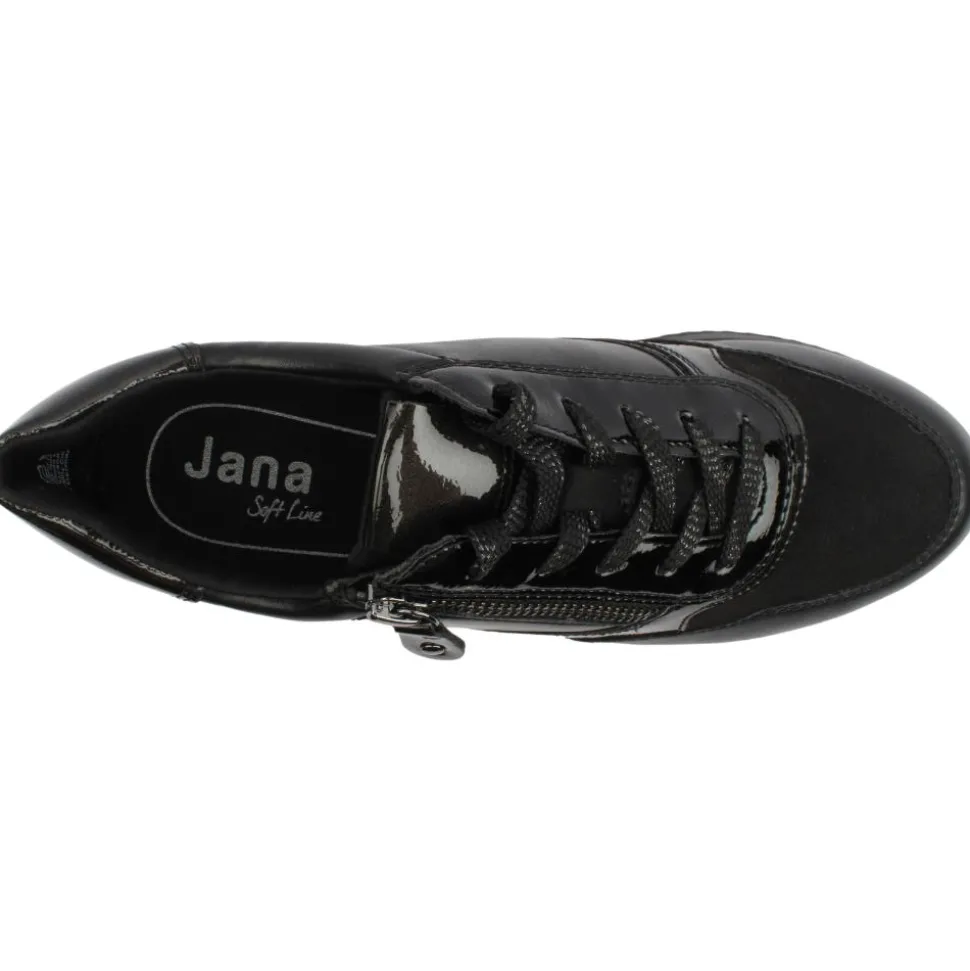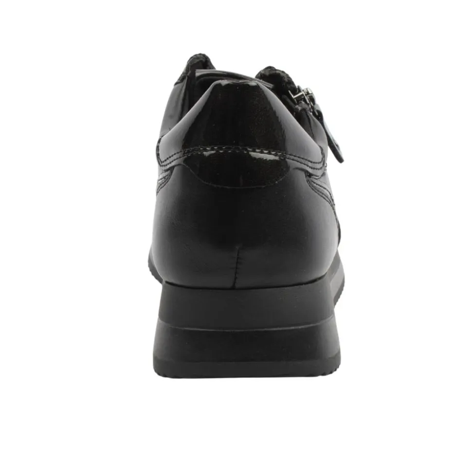 Jana wide fitting ladies trainers in Black, the perfect blend of elegance and comfort, making it a versatile addition to any wardrobe. The combination of Black Materias adds a modern touch without comprimising on comfort and support. Features both a zip and lace system, ensuring easy on and off while allowing for a customized, secure fit. Designed to accommodate widder feet, providing extra room for a more comfortable wear. Ensures all-day comfort by offering superior padding and support, reducing foot fatigue. These are Vegan Shoes.