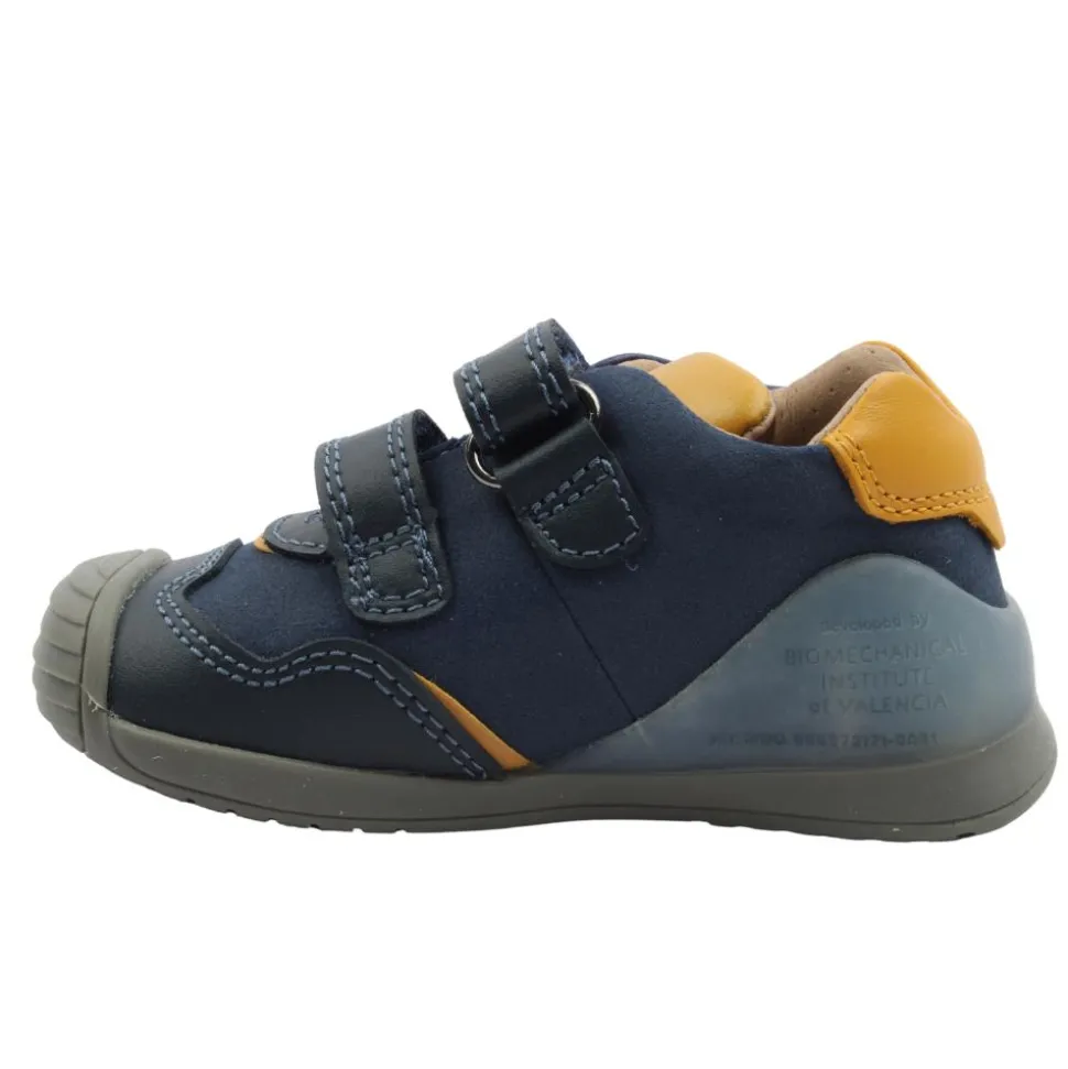 Biomecanics boys shoes 241121 in navy feature double velcro straps, making them easy to put on and take off. They come with removable insoles, which can be convenient for adjusting the fit or accommodating orthotics. Additionally, these shoes include toe protectors, providing extra durability and protection for active children. These features make the shoes both practical and comfortable for everyday wear.