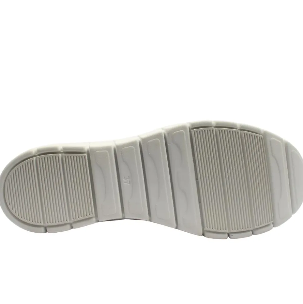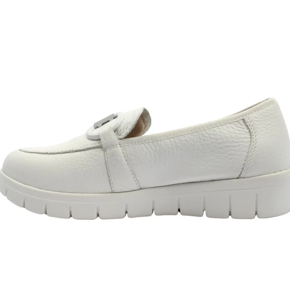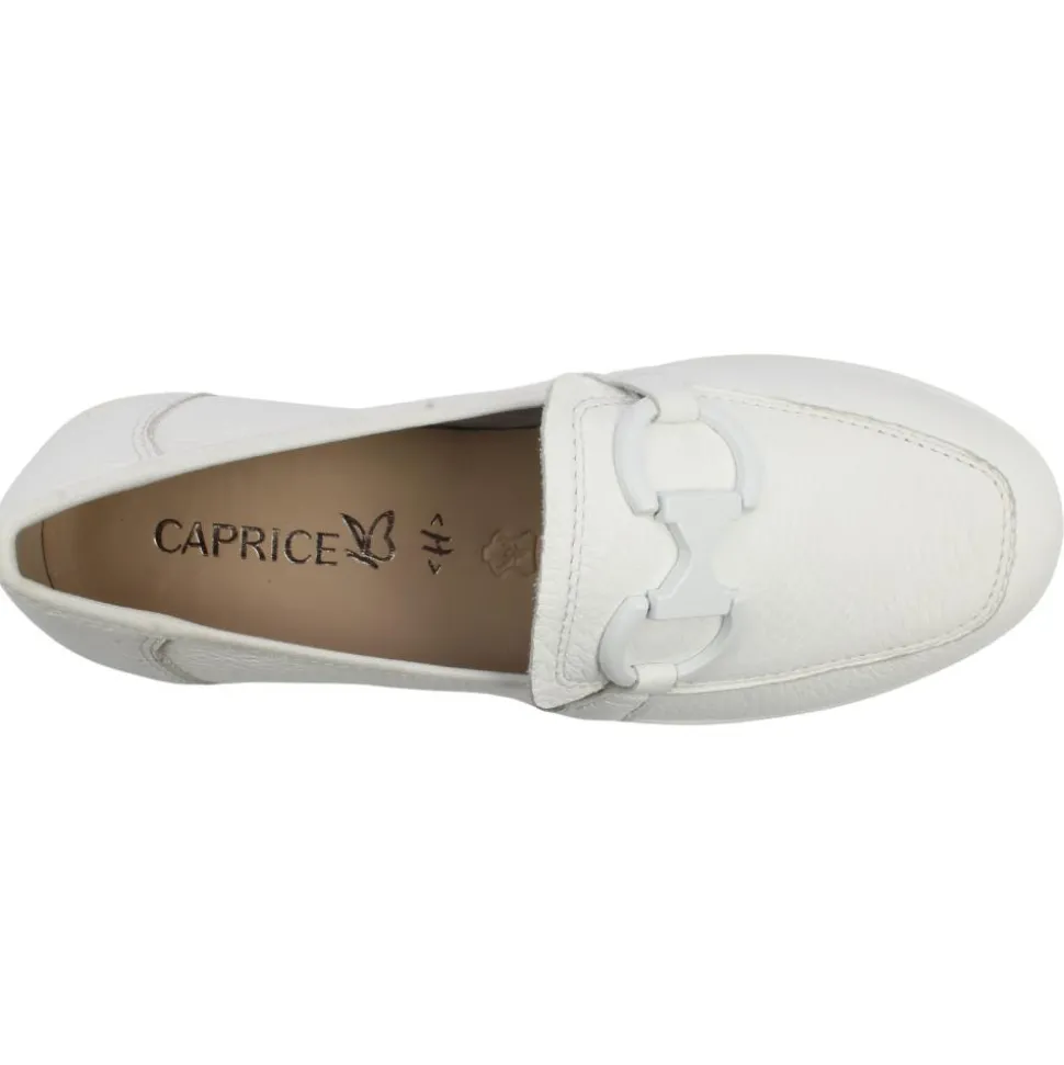 Introducing the effortlessly wide fitting chic casual loafer inspired shoe by Caprice. Crafted with pearl leather upper, this shoe exudes understated elegance, enhanced by a sleek chain detail adorning the front. Designed for both style and comfort, its elasticated topline guarantees a secure fit with every step. Elevate your casual look with this versatile wardrobe essential.