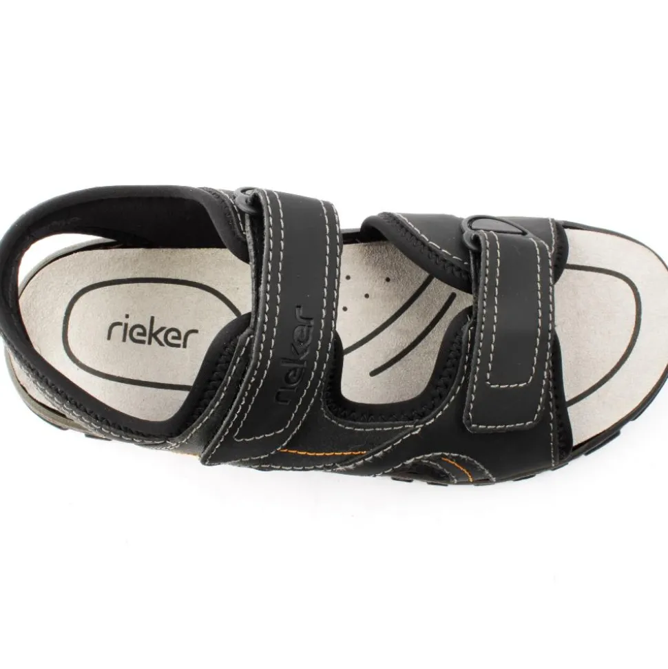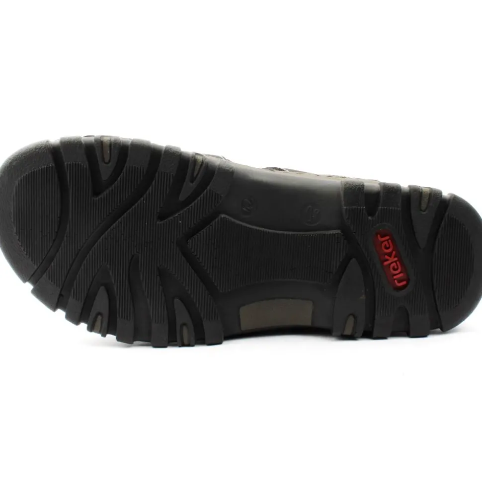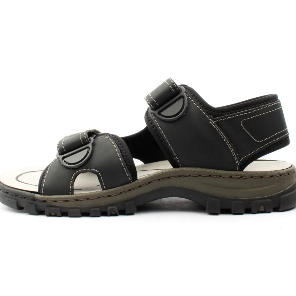 Mens sandals from Rieker Shoes. These Rieker sandals feature a double velcro strap closure, allowing for easy adjustability and a secure fit.