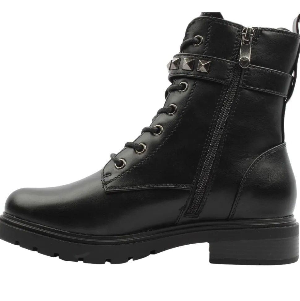 Unleash your inner rebel with the Marco Tozzi Biker Style Boot. Designed with both a zip and lace closure, this boot offers a customizable fit and easy wear. The striking straps across the front and back add a bold, modern touch.