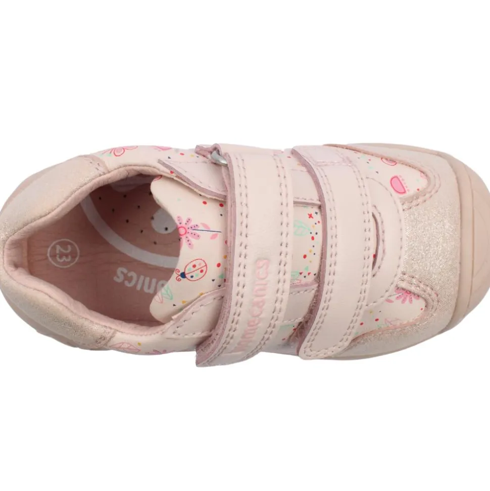 Girls shoes from Garvalin by Biomecanics Shoes with a cute print design.This shoe has a double velcro strap closure, with a fold down tongue for easy on and off. Designed with a removable antibacterial insoles with a toe guide for watching the growth ensuring a perfect fit.The reinforced heel and toe bumper protect busy little feet.