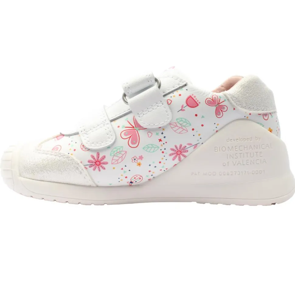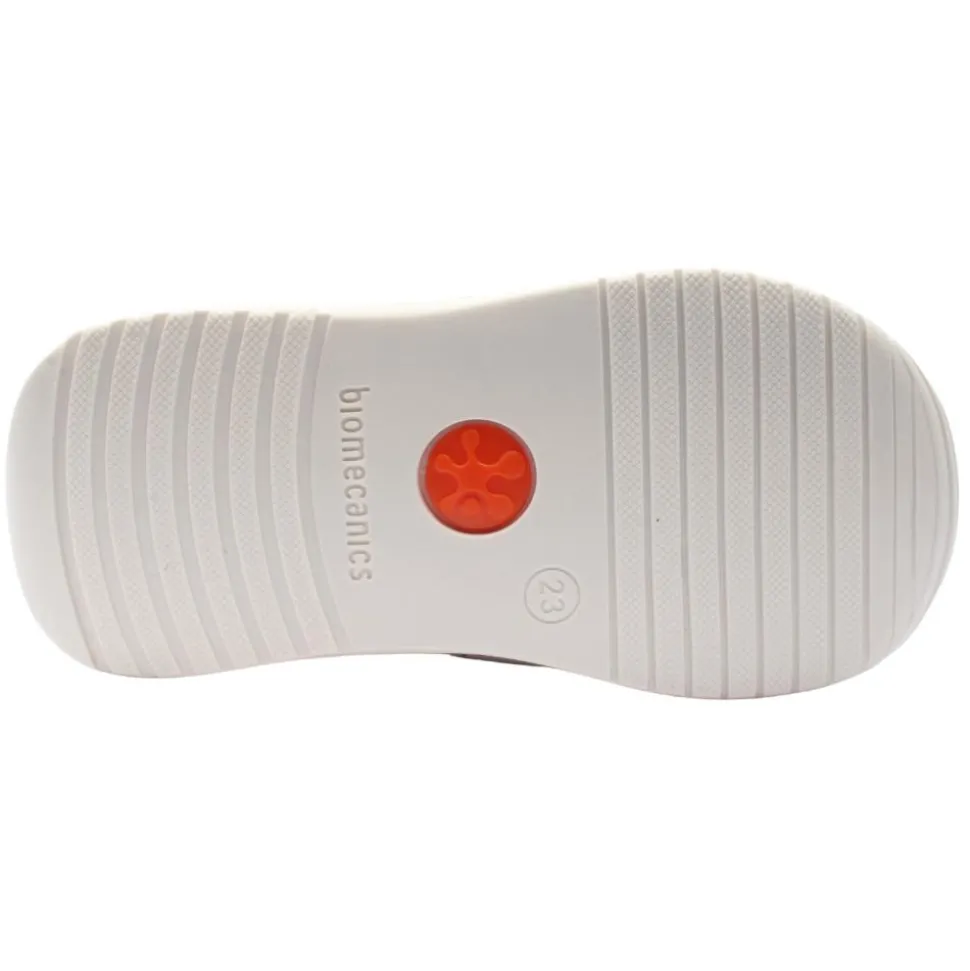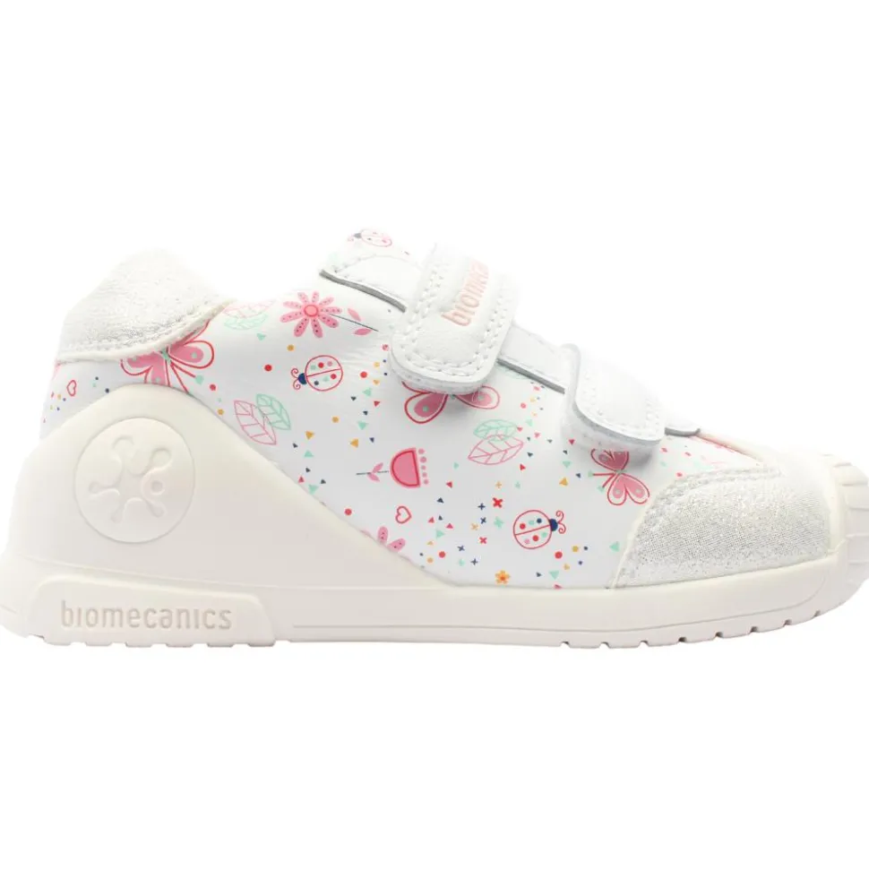 Girls shoes from Garvalin by Biomecanics Shoes with a cute print design.This shoe has a double velcro strap closure, with a fold down tongue for easy on and off. Designed with a removable antibacterial insoles with a toe guide for watching the growth ensuring a perfect fit.The reinforced heel and toe bumper protect busy little feet.