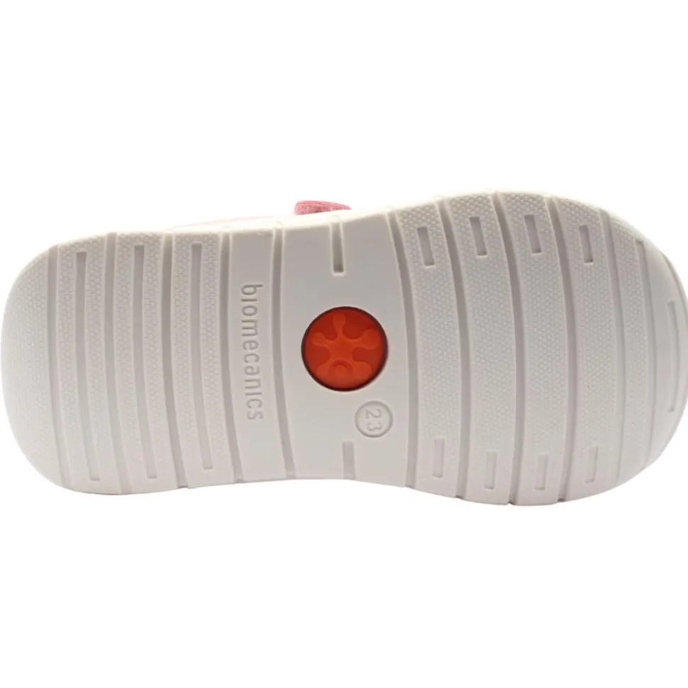 Cute little girls shoes from Garvalin by Biomecanics Shoes. This shoe has a double velcro strap closure, with a fold down tongue for easy on and off. Designed with a removable antibacterial insoles with a toe guide for watching the growth ensuring a perfect fit.The reinforced heel and toe bumper protect busy little feet.