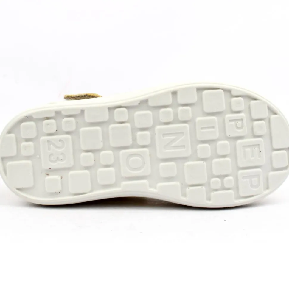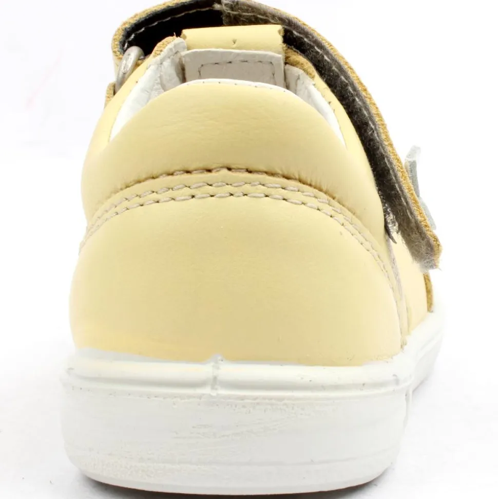 Adorable shoe for girls from Ricosta. This charming shoe features a delightful yellow upper adorned with white floral detailing on both the front and strap. With a convenient velcro closure, slipping on and off is a breeze. Plus, its flexible sole ensures enhanced comfort for all-day wear.