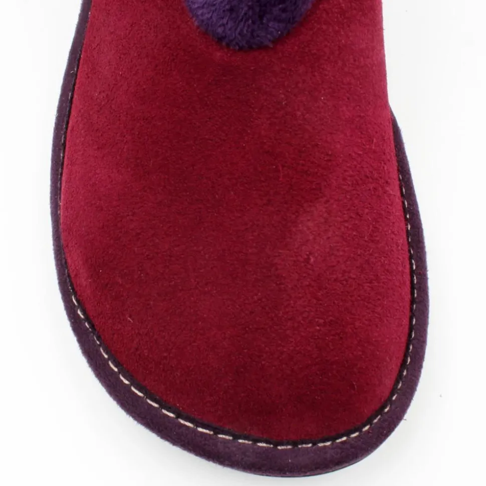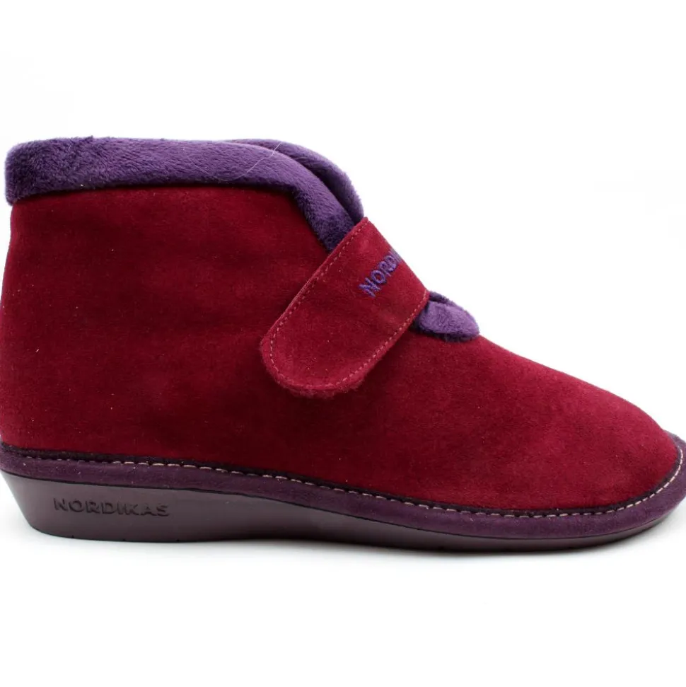 Boot style house shoe from Spanish Brand Nordika . The slippers has a soft rich Burgandy upper with a velcro strap closure which allows for easy/off but also ensures the foot is secure at all times. Includes an anti shock action cushion system which makes them even more comfortable for wearing at home.