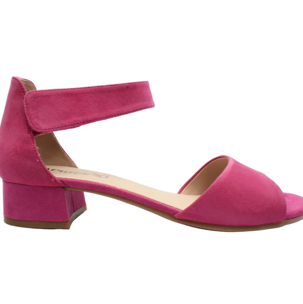 Delicate style meets everyday comfort with these Caprice Low Heel Sandals, crafted in a soft pink suede for a feminine, effortlessly chic look. The sleek silhouette features a supportive low block heel that offers just the right amount of lift, perfect for all-day wear. A Velcro strap ensures easy on-and-off while providing a secure, adjustable fit. With a closed heel for added stability and a softly cushioned insole, these sandals are designed to keep you comfortable without compromising on style.