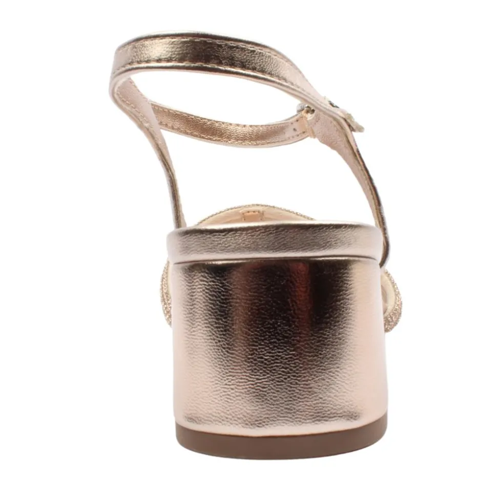 Dressy low heel sandals from Tamaris Shoes in a rose gold upper. These sophisticated sandals feature a dazzling diamante-embellished strappy design, perfect for those special occasions. The low block heel and the padded insole ensures a comfortable feel.