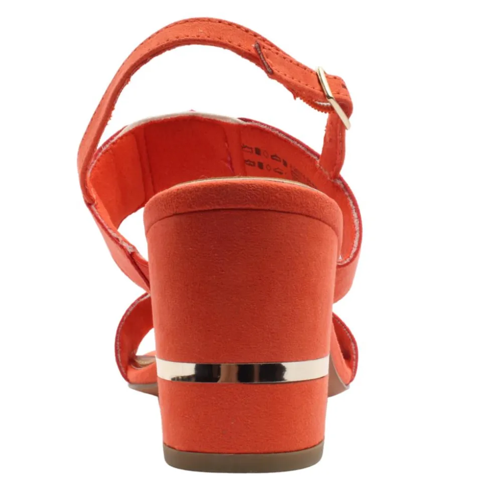 Step out in style with these block heel dressy sandals from Marco Tozzi shoes. Add a pop of colour to your outfit with these colour block sandals. The block heel provides stability and support for all day wear. The buckle strap closure ensures a secure and comfortable fit.