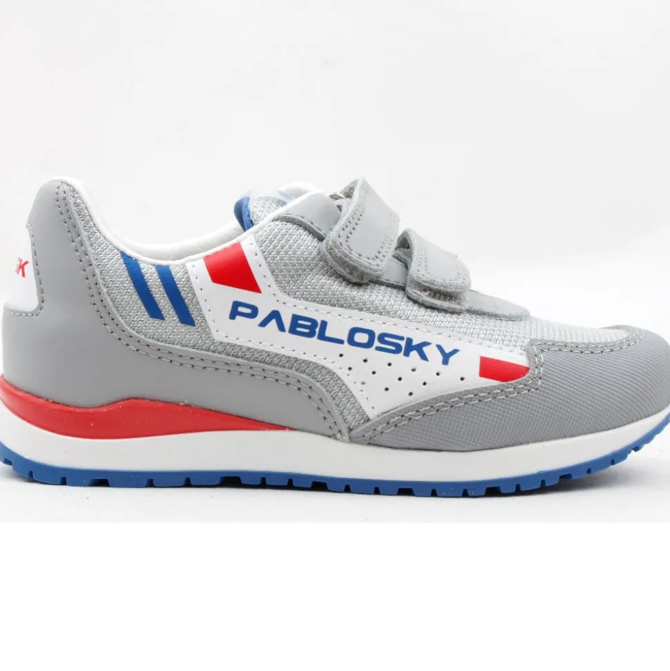 Boys runners from Pablosky for those busy little men. The upper is a combination of grey leather and textile with a strong textured synthetic surrounding the toe for improved durability. The padded leather insole is removable.The runner features a double velcro closure which allows for easy on/off while keeping the foot secure.