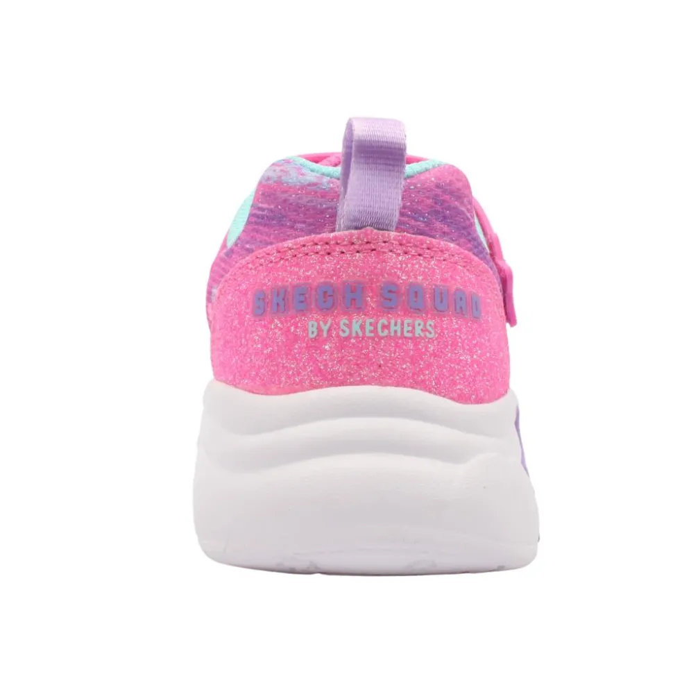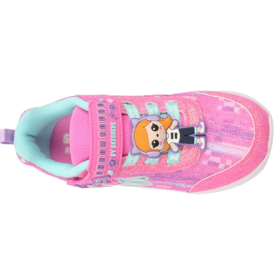 Kids girls runners from Skechers shoes. This playful and vibrant sneaker features Pixel, one of the fun characters from the Skech Squad, on the front. These runners are as easy to wear as they are to clean – just toss them in the wash for a quick refresh!