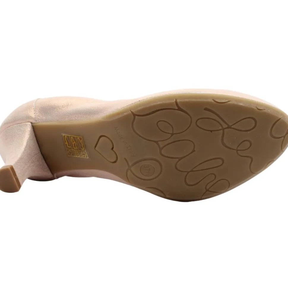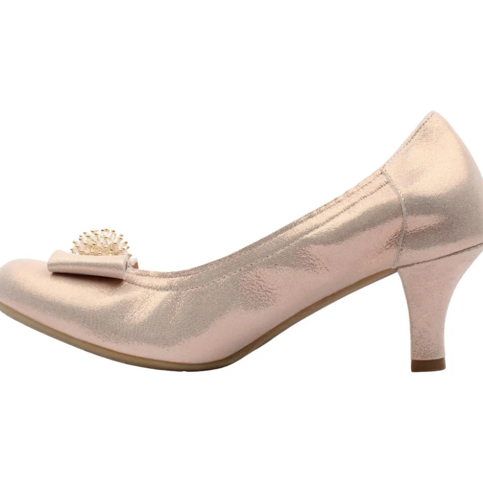 The Le Babe shoes 3047 are the perfect choice for mother of the bride shoes.Featuring a sleek pink shimmer exterior, a comfortable low block heel, and a decorative bow on the toe.Their elegant design and high-quality craftsmanship ensure both style and comfort for the special day. These Le Babe Shoes have an elasticated topline which ensures a secure fit while the lower heel & leather insole add to the comfort of the shoe.