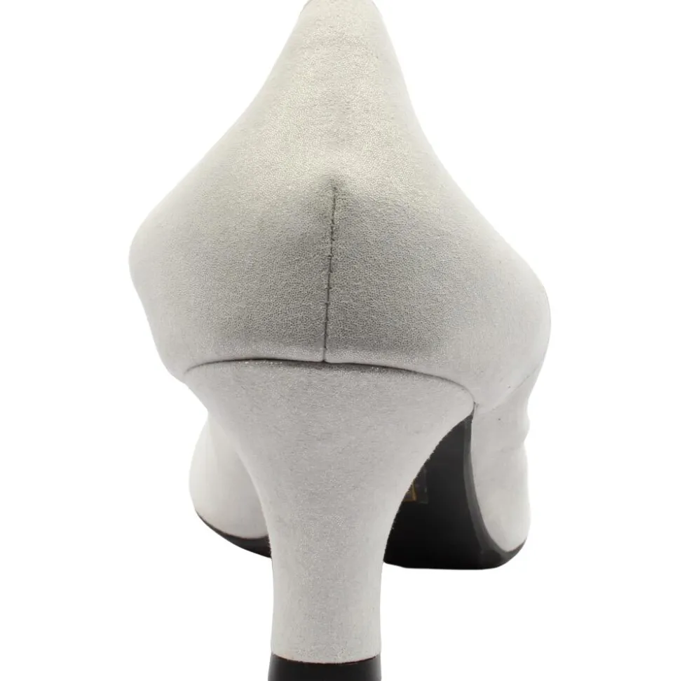 The Le Babe shoes 3047 are the perfect choice for mother of the bride shoes.Featuring a sleek silver shimmer exterior, a comfortable low block heel, and a decorative bow on the toe.Their elegant design and high-quality craftsmanship ensure both style and comfort for the special day. These Le Babe Shoes have an elasticated topline which ensures a secure fit while the lower heel & leather insole add to the comfort of the shoe.