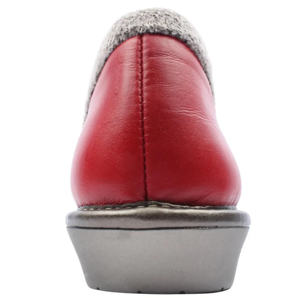 Full slipper made with soft red leather uppers & soft grey breathable warm lining. Includes an anti shock action system which makes them even more comfortable for wearing at home.