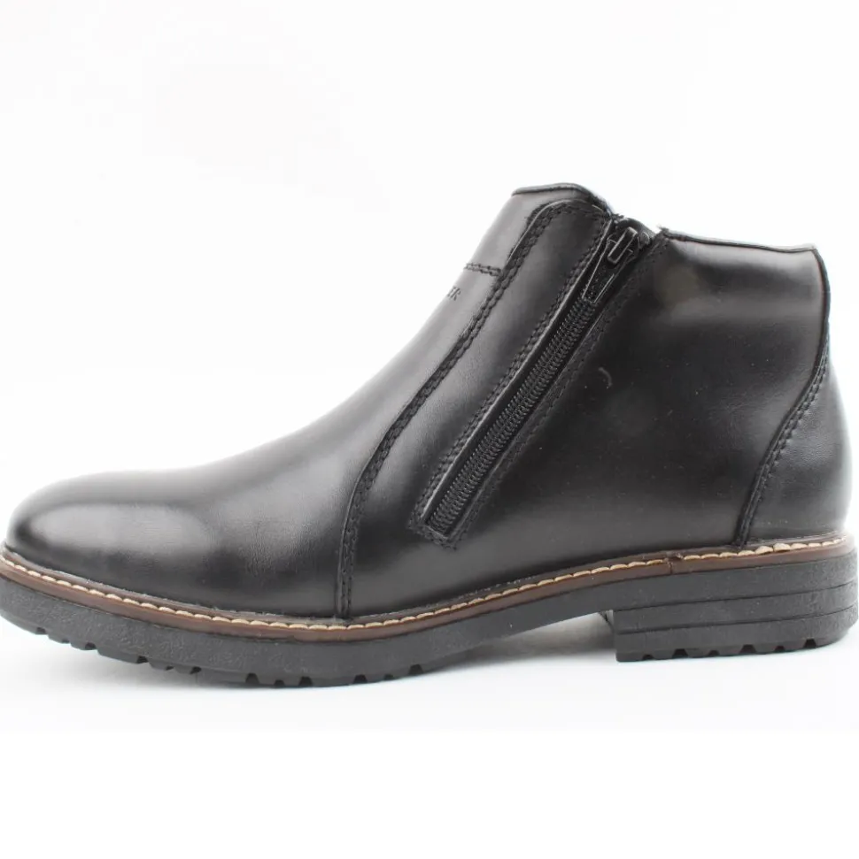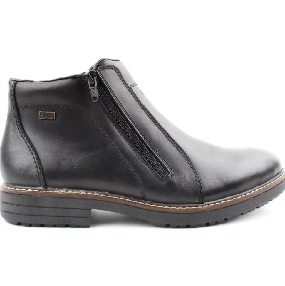 Mens Boots from Rieker. These Mens Ankle Boots have a warm lining to keep feet warm & a double zip for easy on & off. Rieker Text lining to keep feet extra warm & dry during wet weather.
