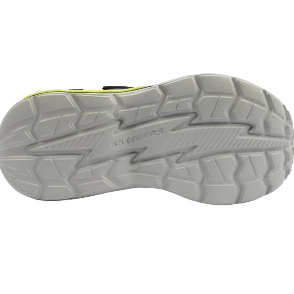 The Skechers Boys runners (400149L) bring bold style and fun to every step. These runners feature a navy design with vibrant orange and luminous yellow detailing for an eye-catching look. The light-up outsole adds extra excitement, and with an on/off button on the Velcro strap, kids can control when the lights shine. Elastic laces make for easy slip-on and off, while the single Velcro strap ensures a secure fit. Perfect for active boys, these shoes combine playful lighting with comfort and convenience.
