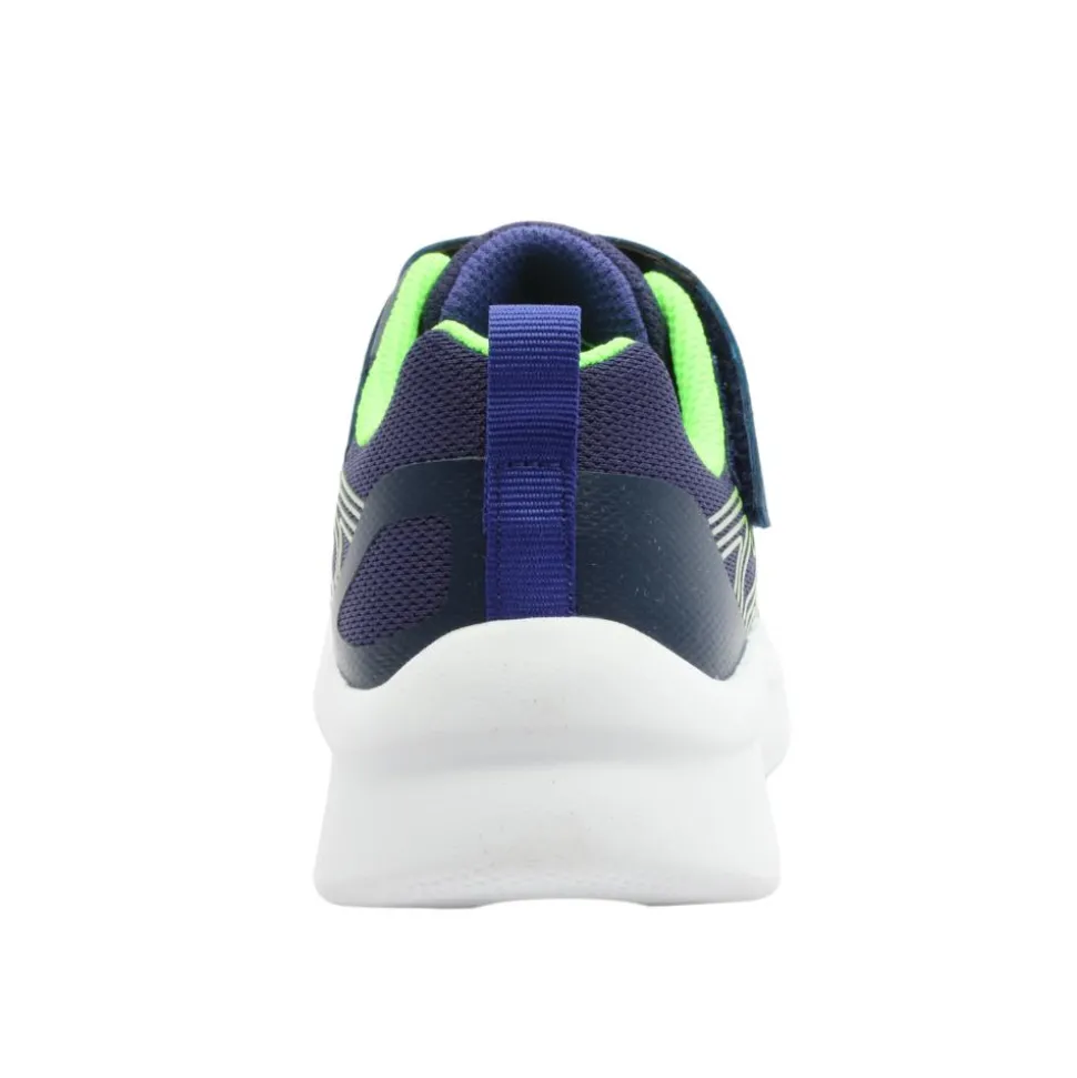 Cute boys runner from the Skechers collection. This runner has a soft Black textile upper with a red lining and red and yellow detailing at the side. A single velcro strap closure and elastic laces allows for easy on/off while keeping the foot secure. This runner is lightweight & flexible while also providing cushioned support. Machine Washable.