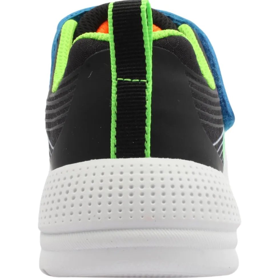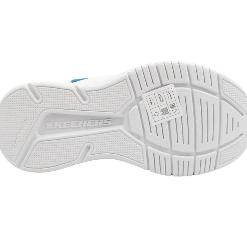 Introducing a sporty style for Boys from the Skechers . This lightweight design boasts a breathable upper crafted from athletic mesh and synthetic materials. Featuring stretch laces and a convenient velcro strap closure, it ensures a secure fit. This runners are machine washable.