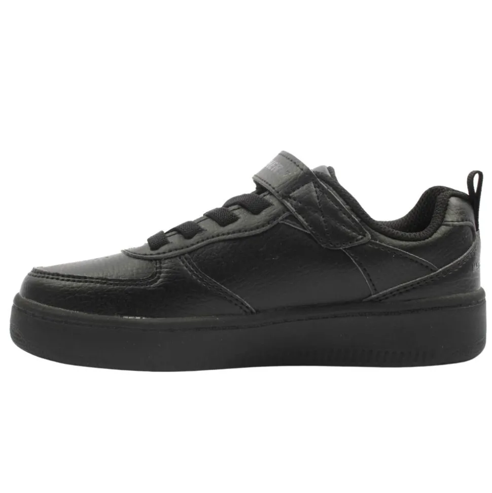 Boys runners from Skechers kids shoes range. These School Shoes are lightweight. A velcro strap closure with an elasticated lace allows for easy on/off while also keeping the shoe secure on the foot.